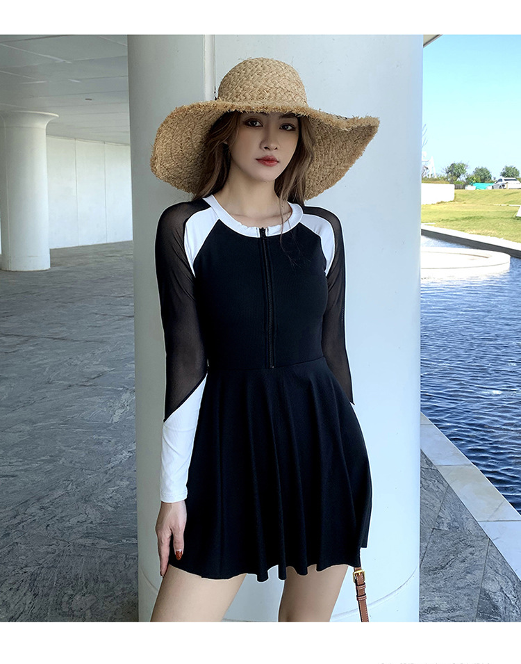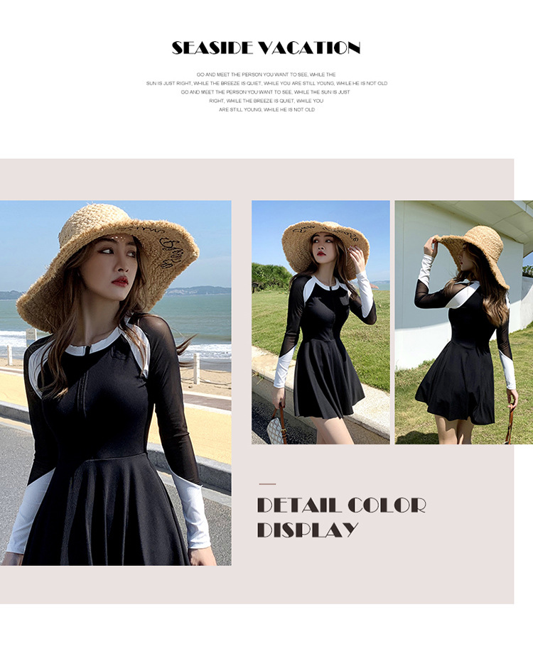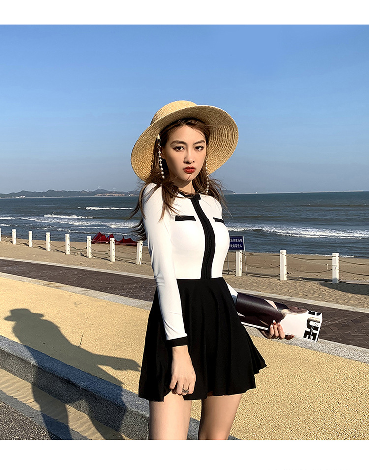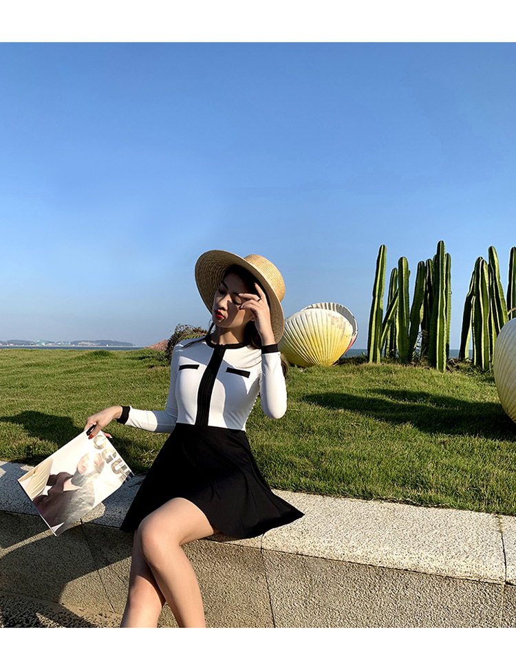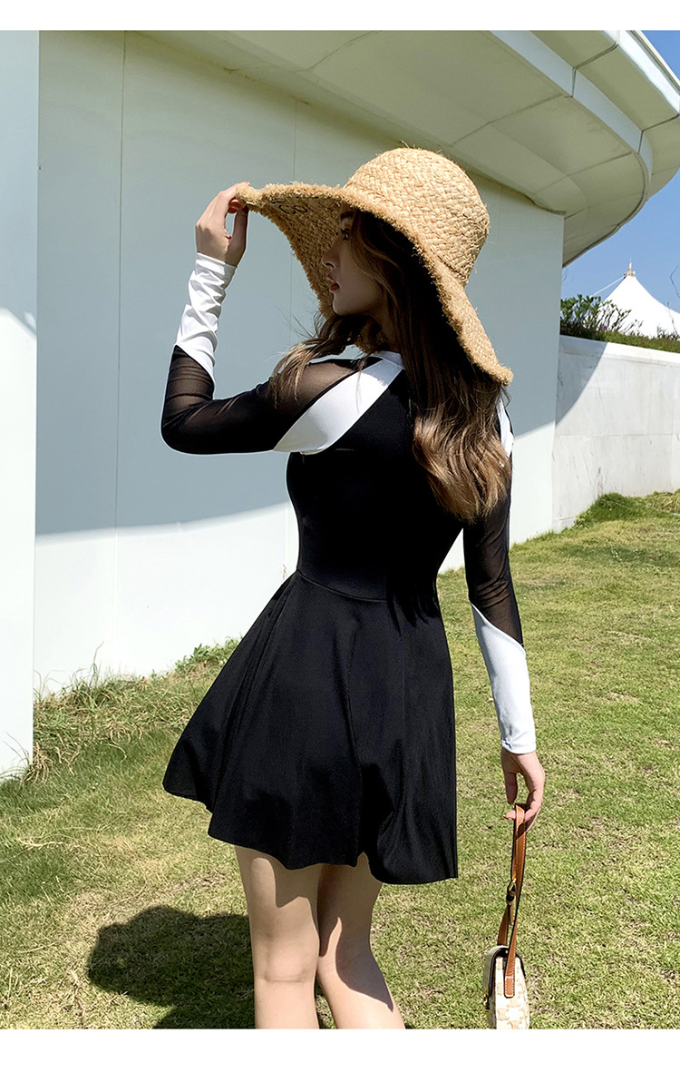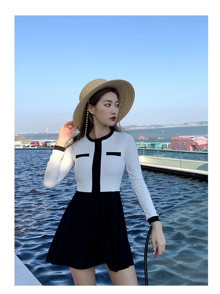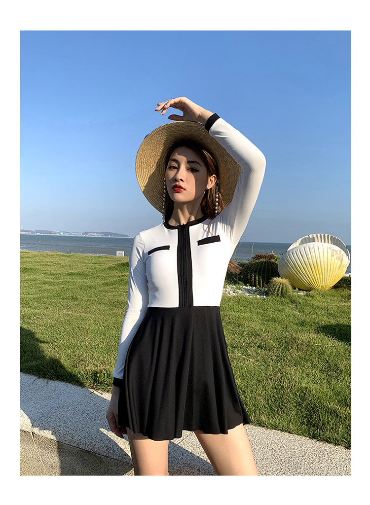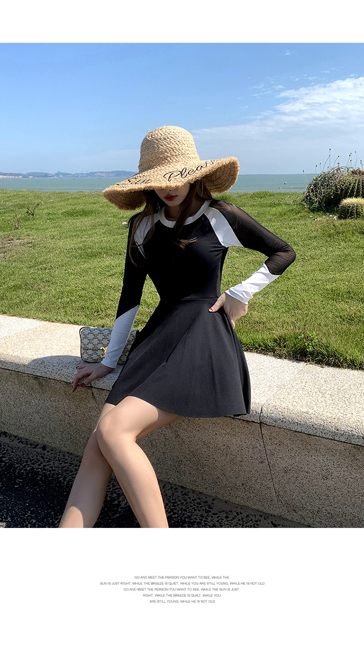 여성용 온천 해변 휴가 수영복, 슬리밍 및 배 커버, 학생 보수적 원피스 긴팔 자외선 차단 다이빙 싼야 서핑 슈트스토어 가기