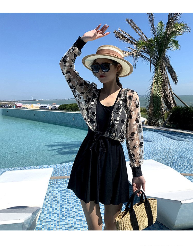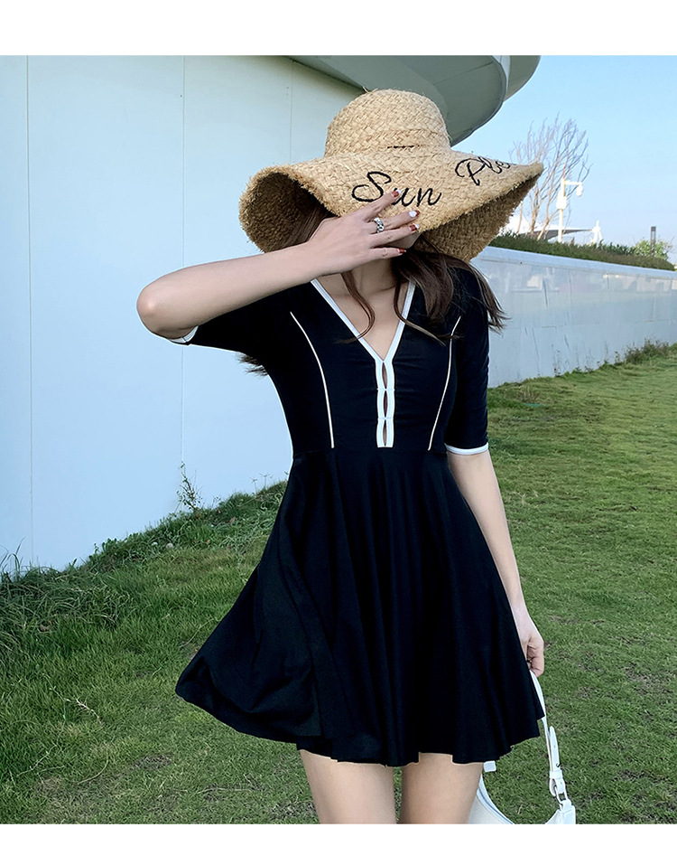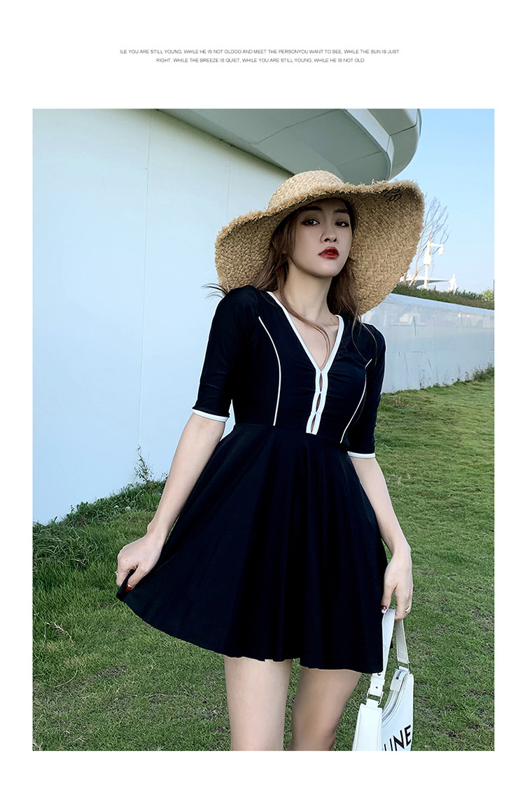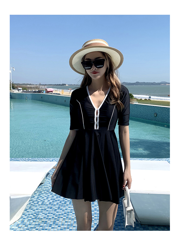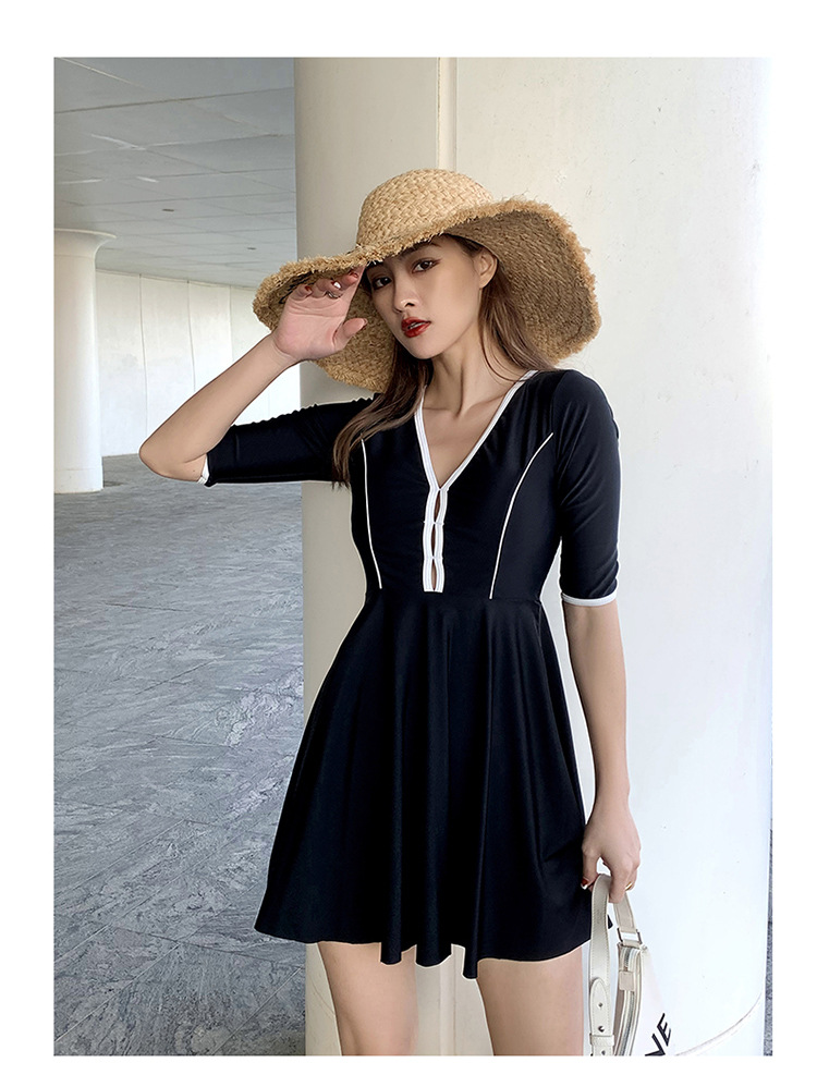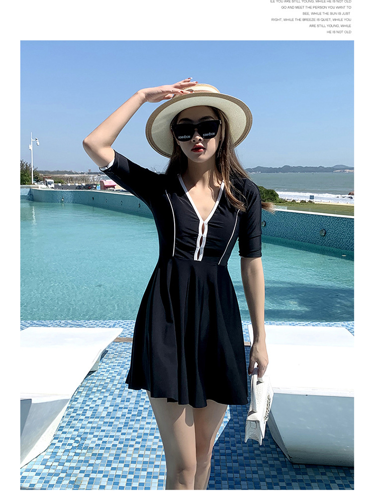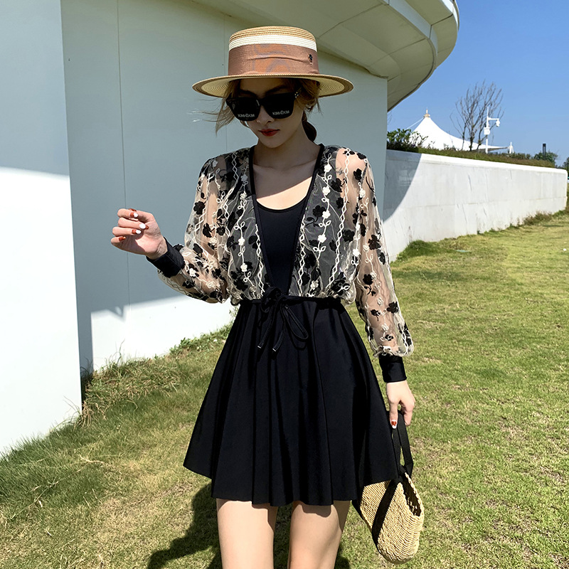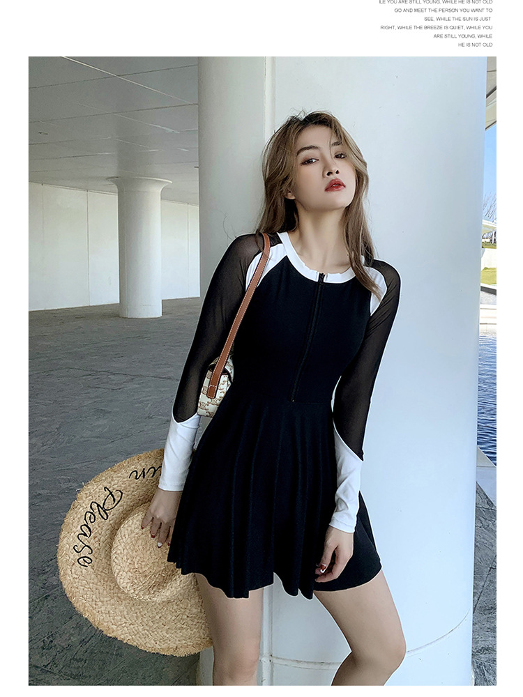 여성용 온천 해변 휴가 수영복, 슬리밍 및 배 커버, 학생 보수적 원피스 긴팔 자외선 차단 다이빙 싼야 서핑 슈트스토어 가기