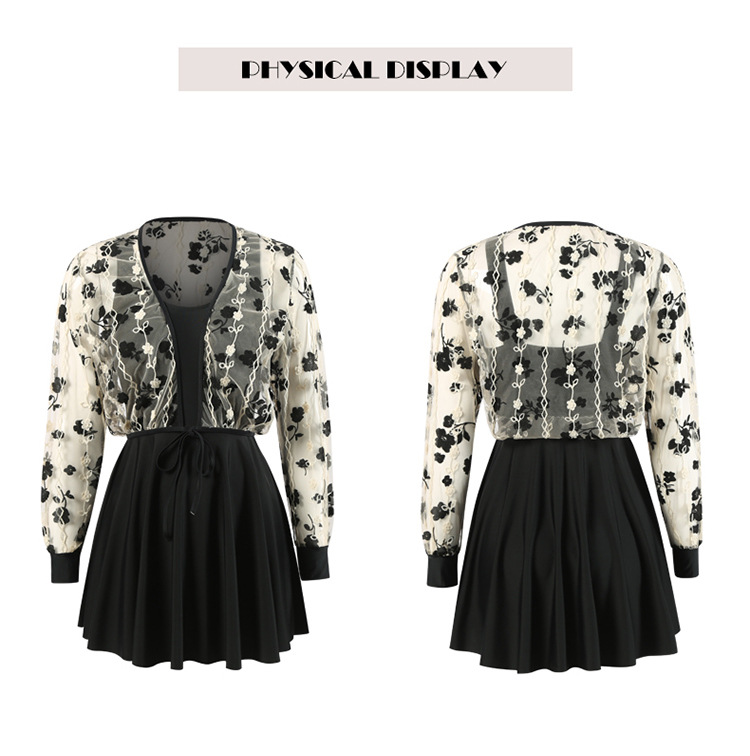 여성용 온천 해변 휴가 수영복, 슬리밍 및 배 커버, 학생 보수적 원피스 긴팔 자외선 차단 다이빙 싼야 서핑 슈트
