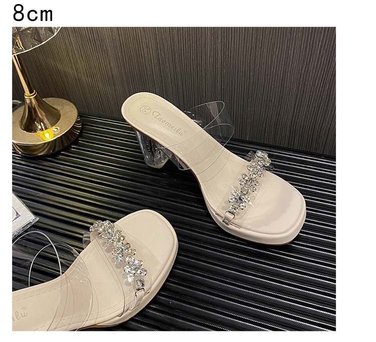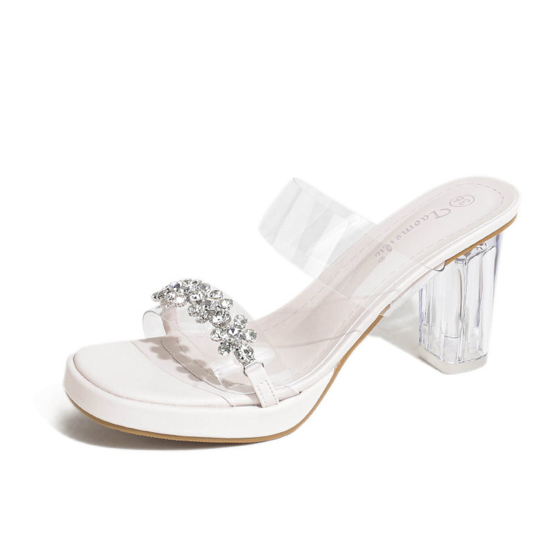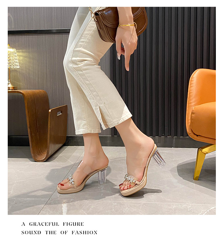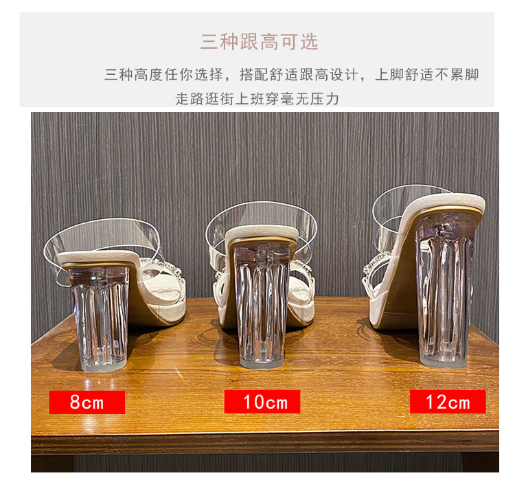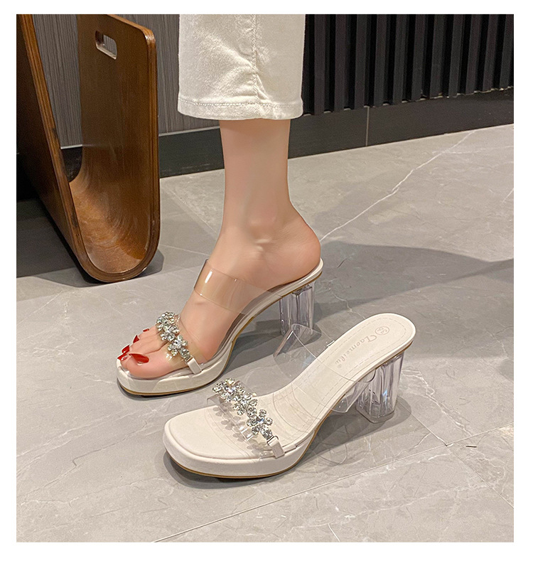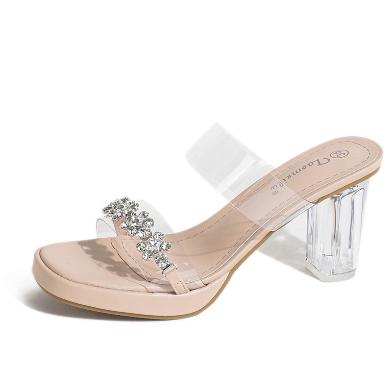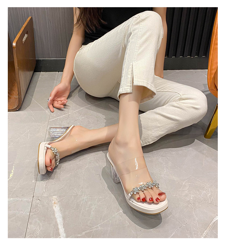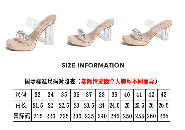 2025 여성을위한 하이힐 테이블 크리스탈 두꺼운 힐 미드 힐 스몰 사이즈 투명 샌들을 가진 여름 새로운 스타일 슬리퍼