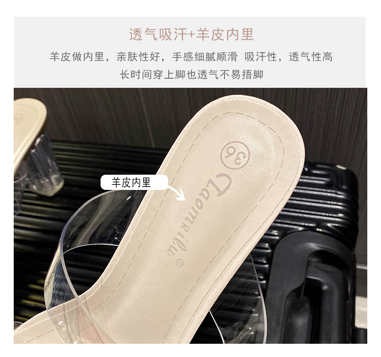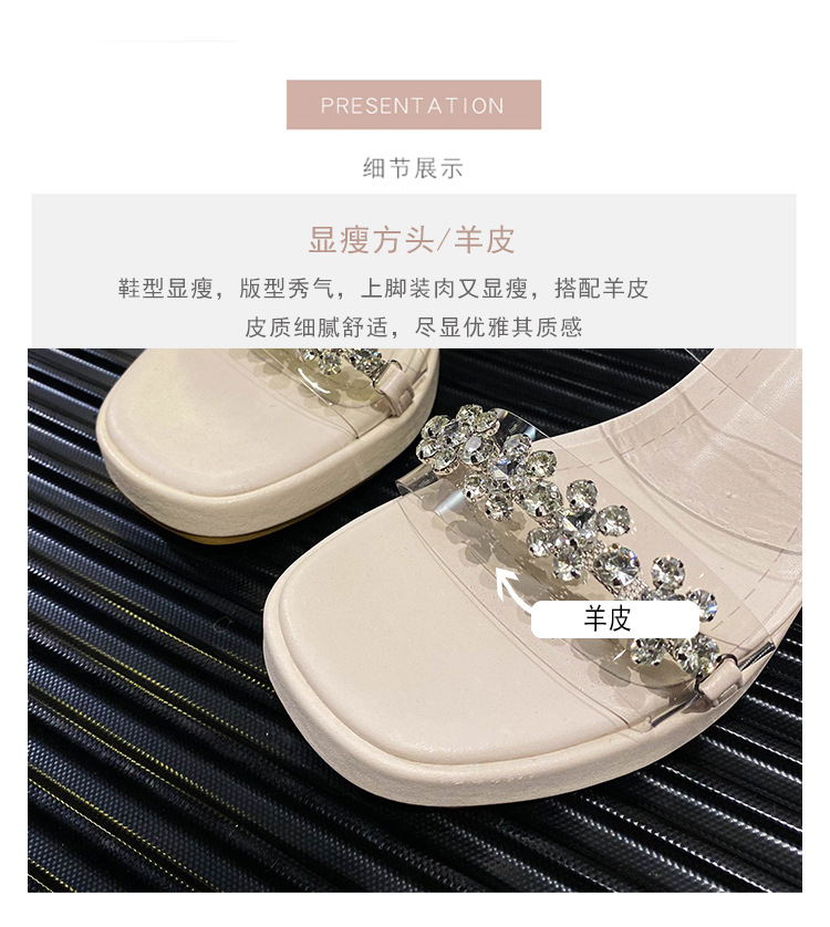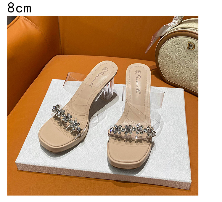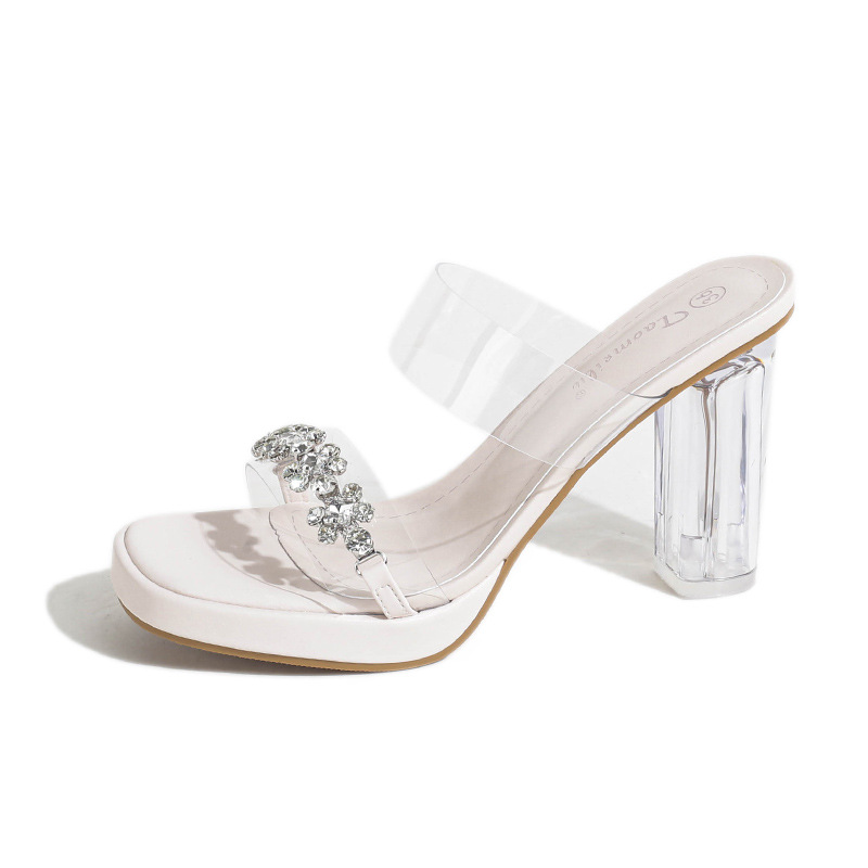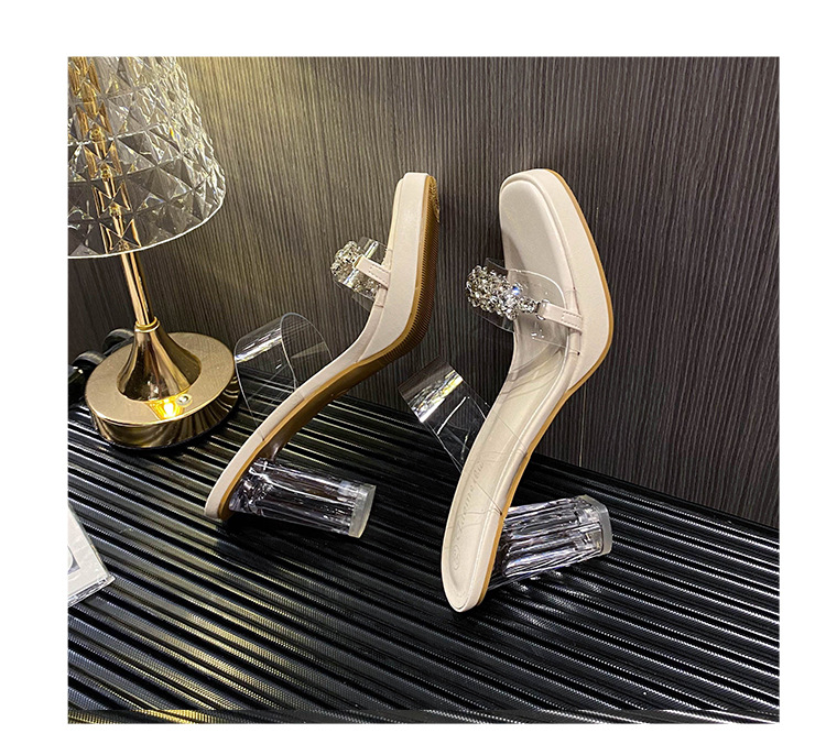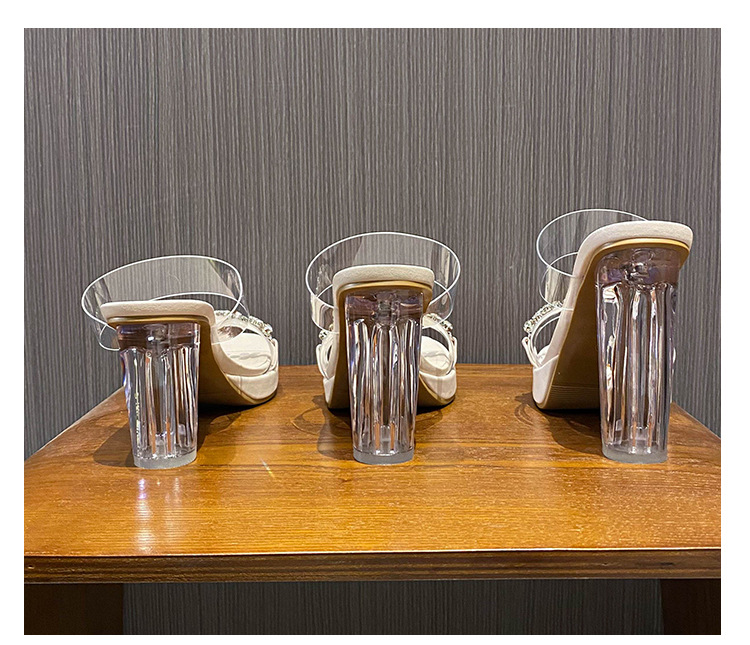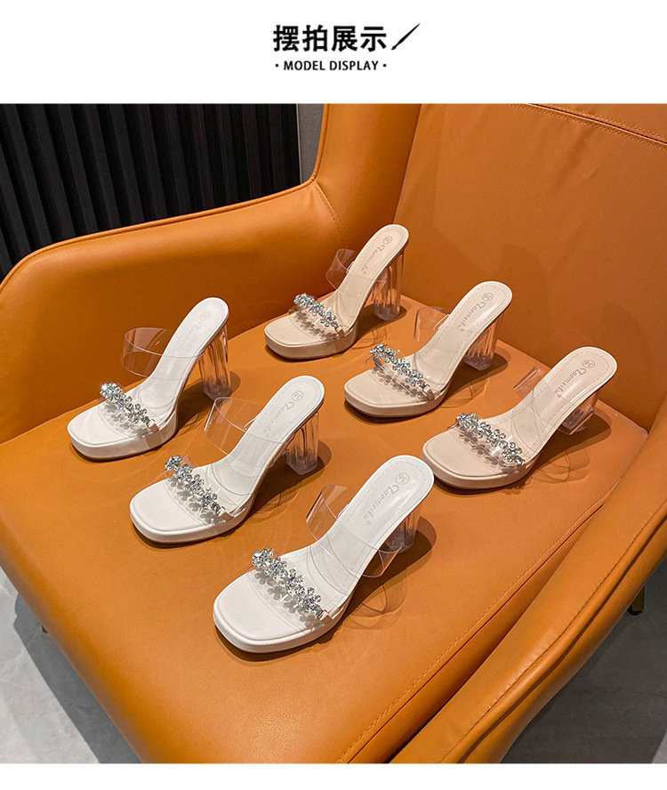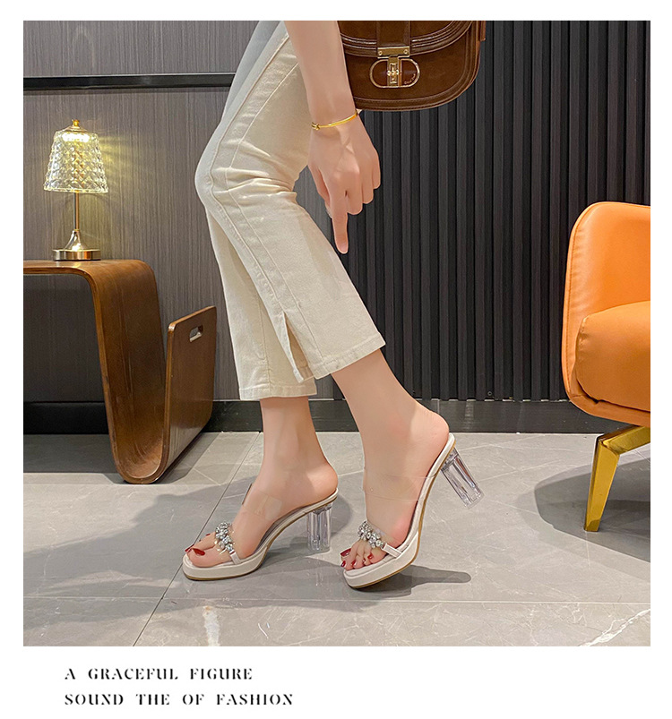 2025 여성을위한 하이힐 테이블 크리스탈 두꺼운 힐 미드 힐 스몰 사이즈 투명 샌들을 가진 여름 새로운 스타일 슬리퍼
