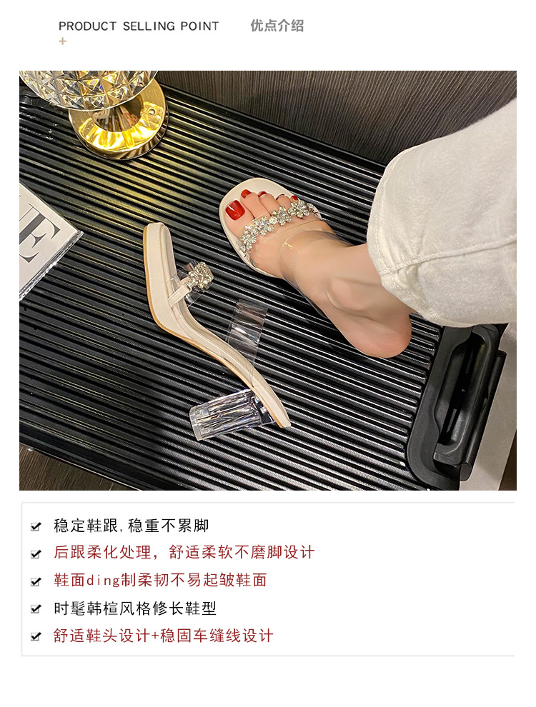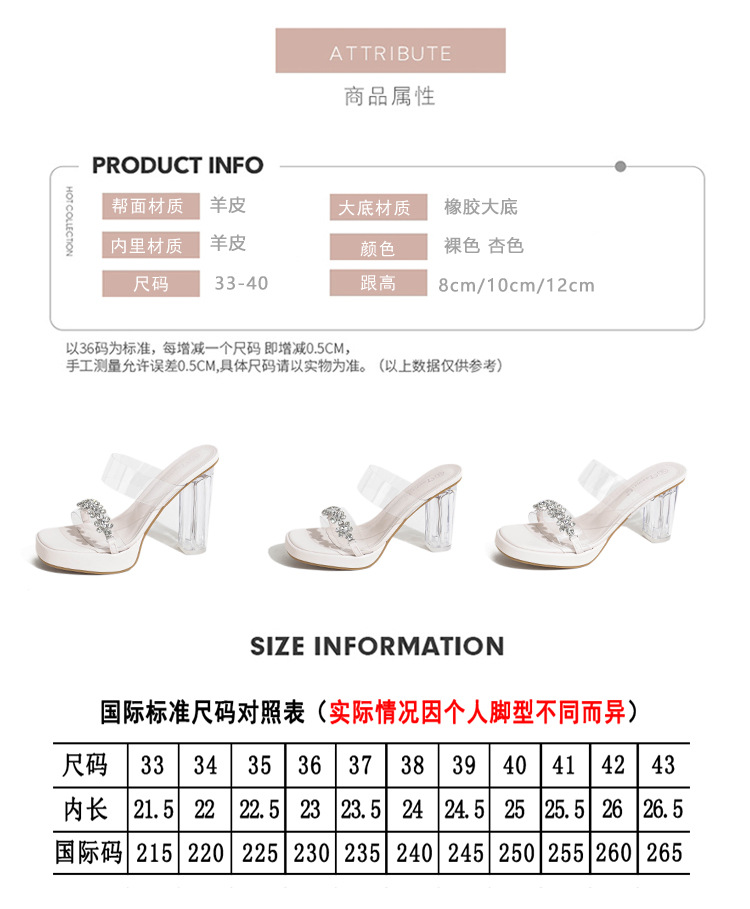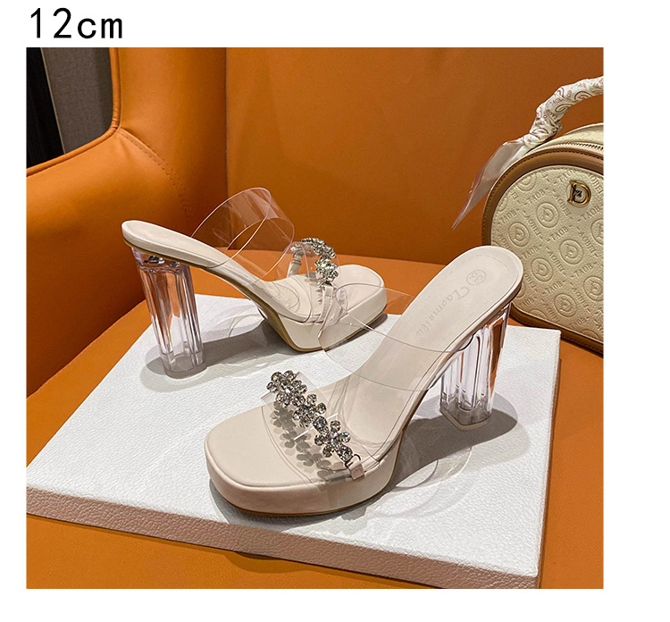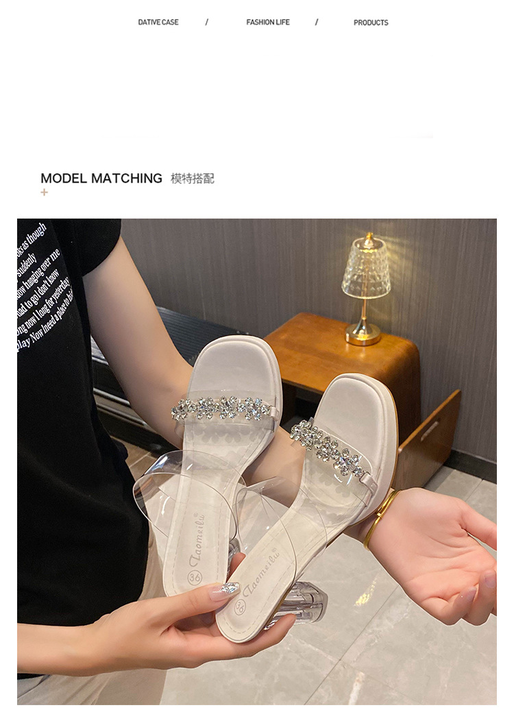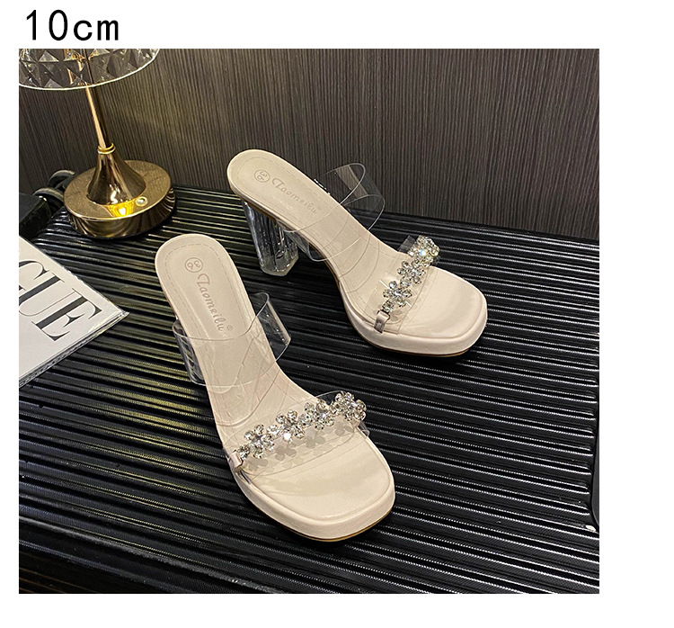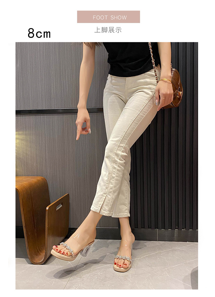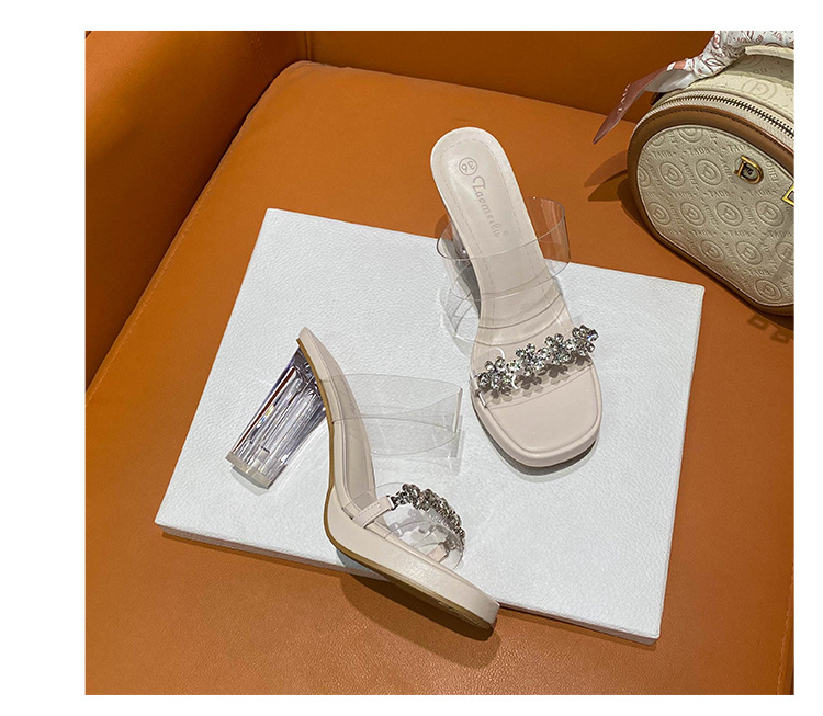 2025 여성을위한 하이힐 테이블 크리스탈 두꺼운 힐 미드 힐 스몰 사이즈 투명 샌들을 가진 여름 새로운 스타일 슬리퍼