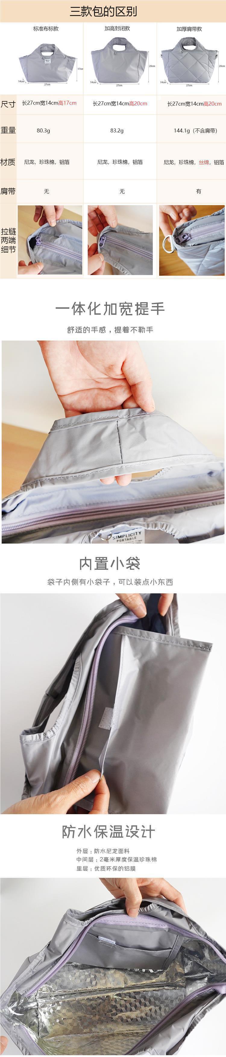 새로운 일본 스타일 간단한 모양의 도시락 가방 나일론 경량 핸드백 절연 가방 방수 알루미늄 호일 도시락 가방스토어 가기
