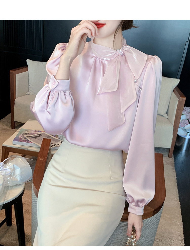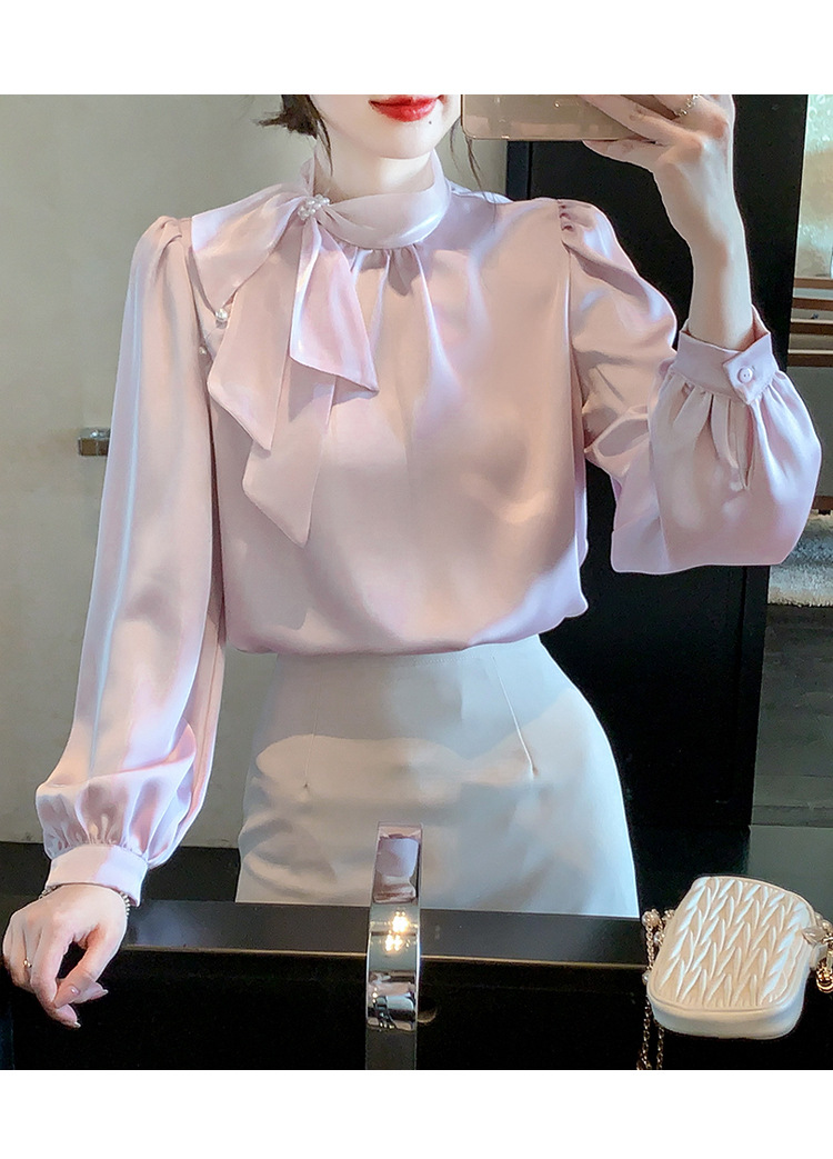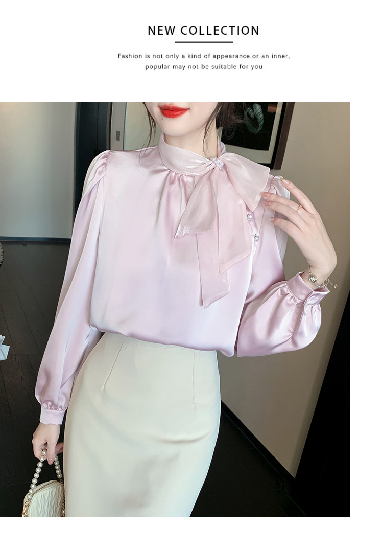 2025 봄 신상 여성 셔츠 디자인 틈새 봄, 가을 새틴 패션 긴팔 셔츠스토어 가기