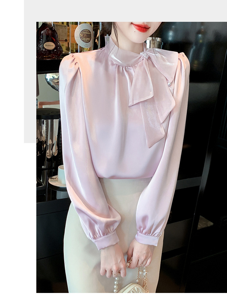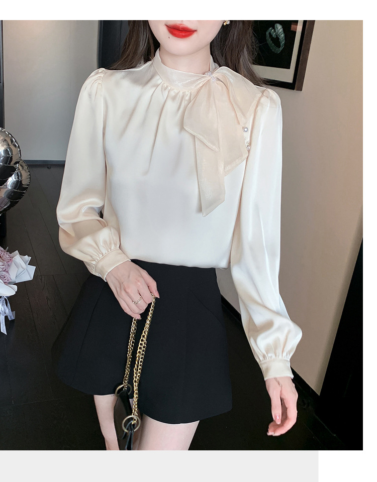 2025 봄 신상 여성 셔츠 디자인 틈새 봄, 가을 새틴 패션 긴팔 셔츠