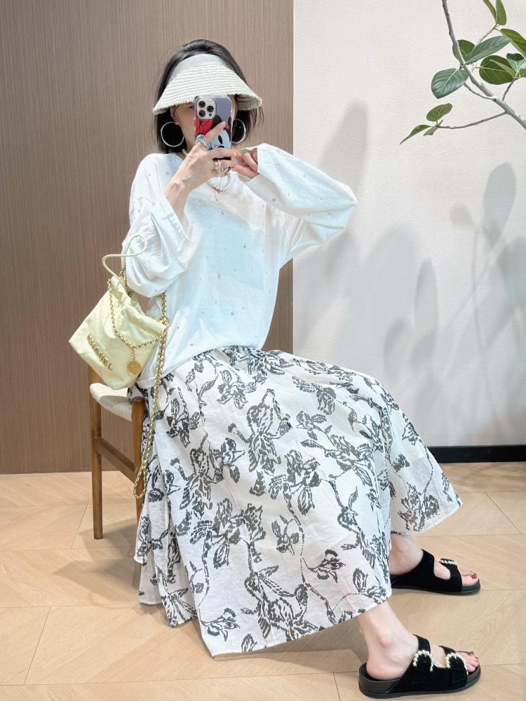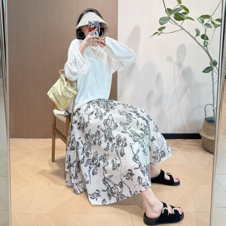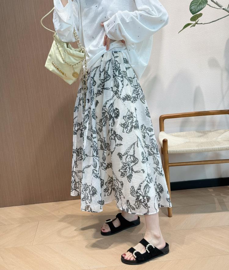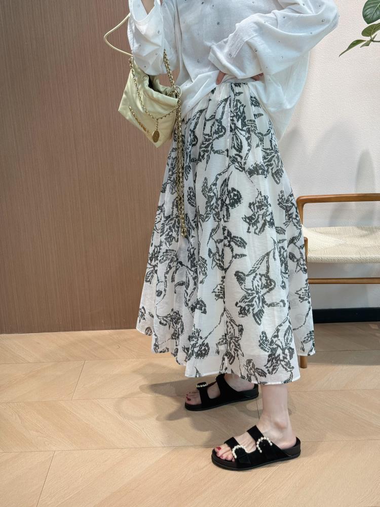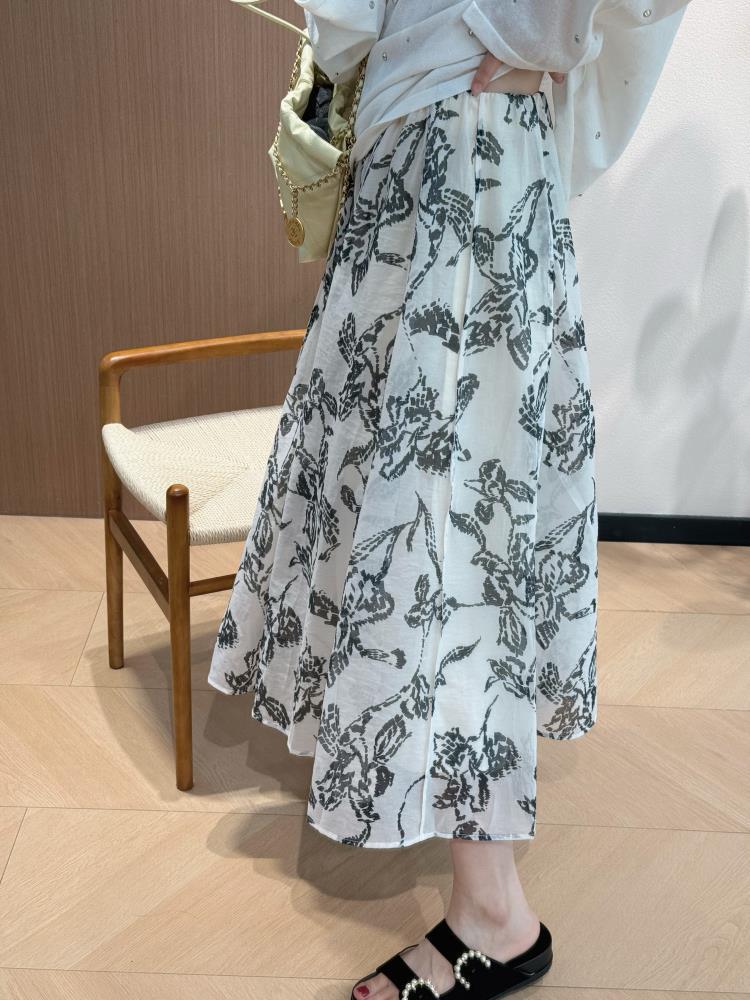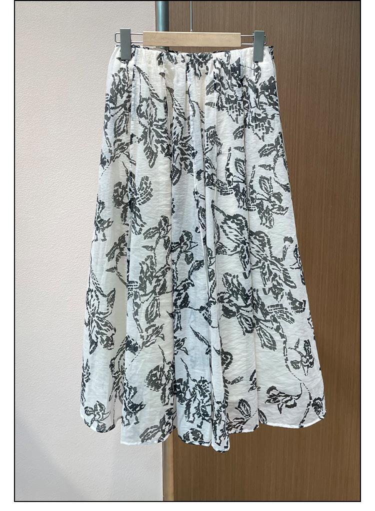 ZHI垂樱鞭印花蓬松伞裙半身裙,