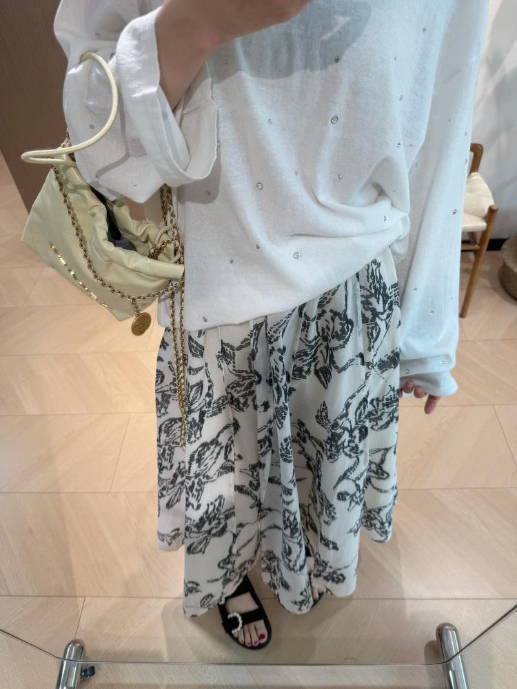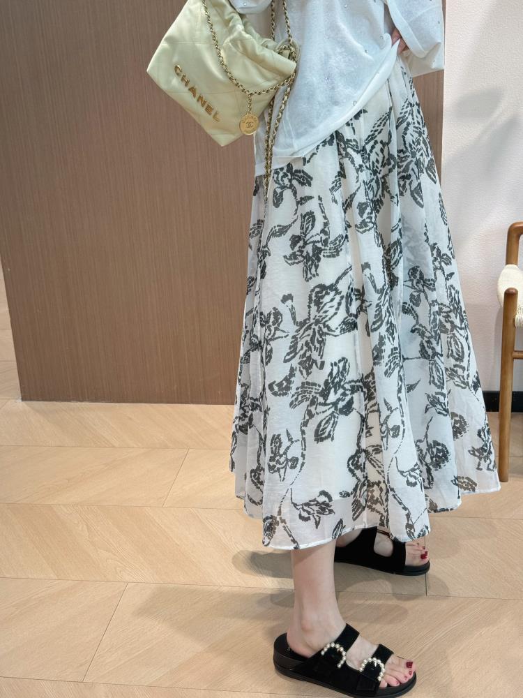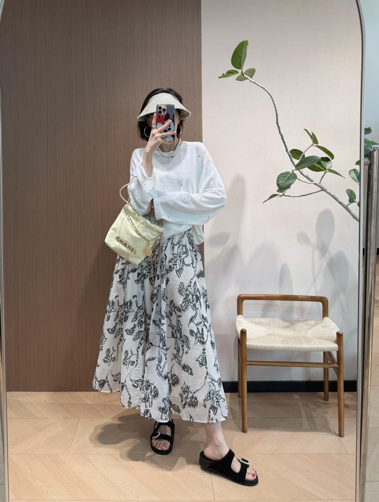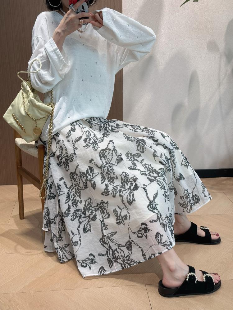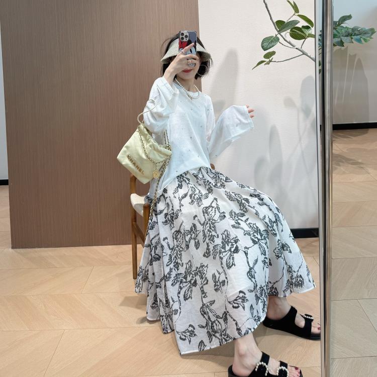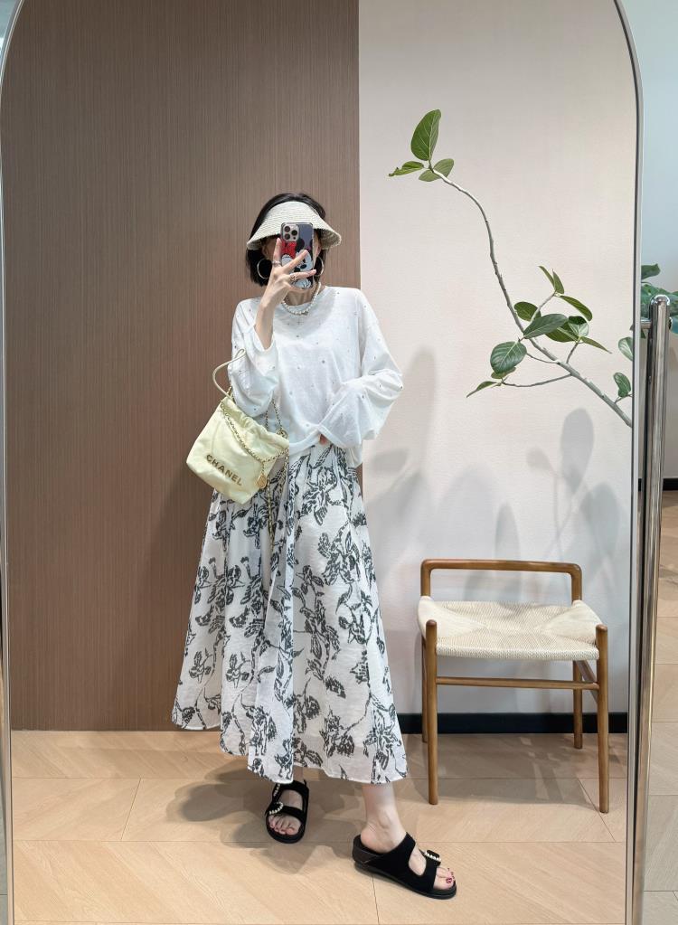ZHI垂樱鞭印花蓬松伞裙半身裙,
