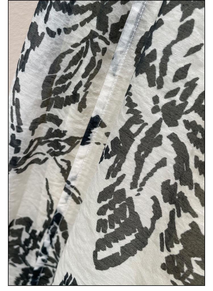 黑色的优雅印花与米色为底的面料柔和映衬,
