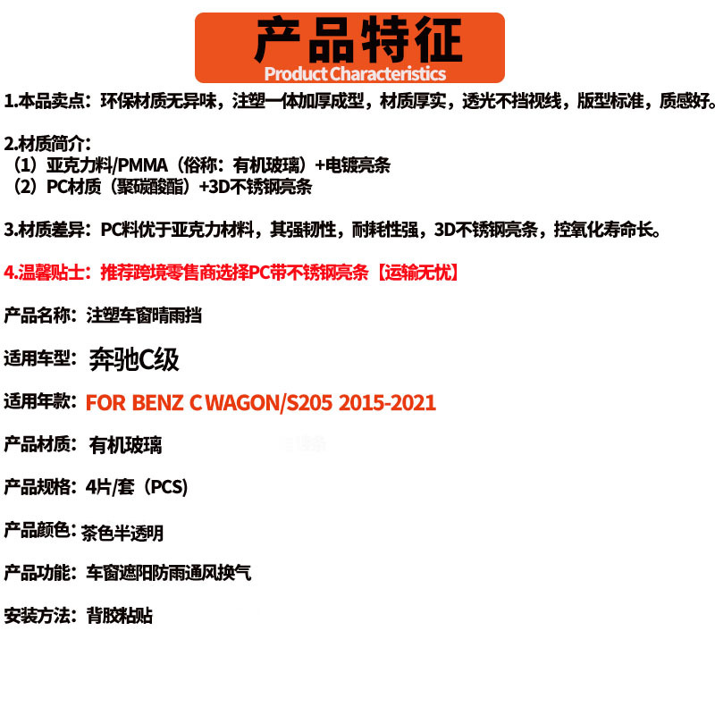메르세데스-벤츠 C 클래스 표준 축 여행 버전 비 또는 빛 방지 벤츠 C WAGON 2015-21 윈도우 바이저에 적합스토어 가기
