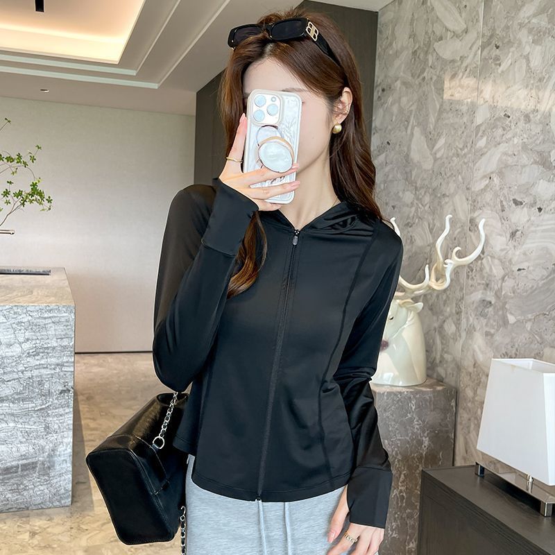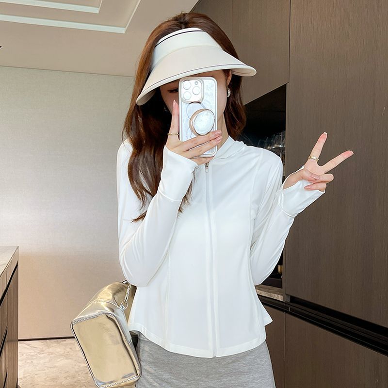 아이스 실크 타이트 허리 태양 보호 의류 2025 새로운 여성 여름 야외 후드 UV 보호 태양 보호 의류 코트 탑