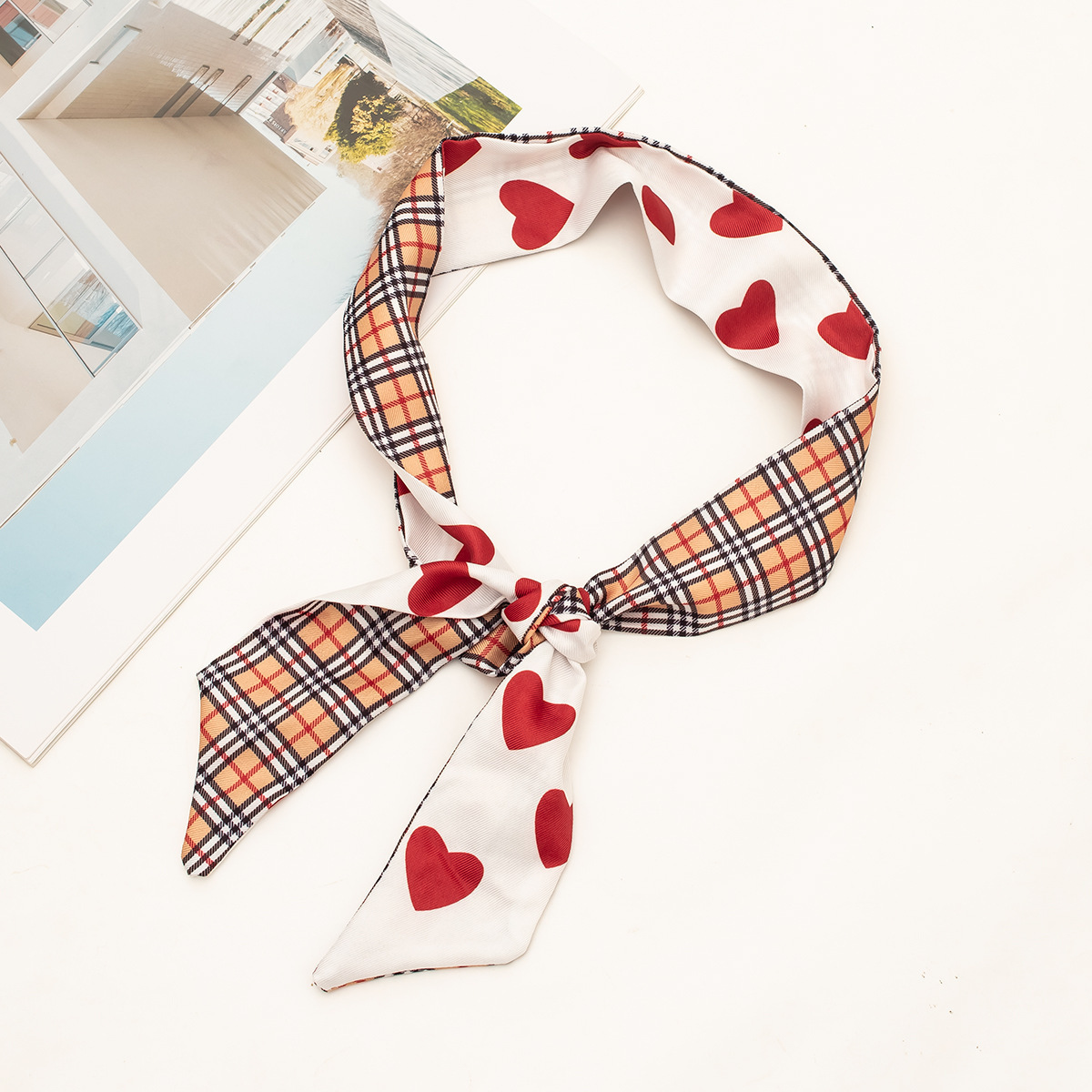 • 【체크무늬 시리즈●레드러브II] 실크스카프 1개