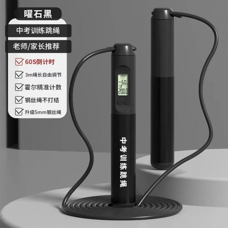 • 블랙 [3.M 스틸 와이어 로프] + 예비 스틸 와이어 로프 + 예비 배터리 - [고교 입시 훈련 줄넘기/타이밍 및 카운팅] - 체육 교사 추천