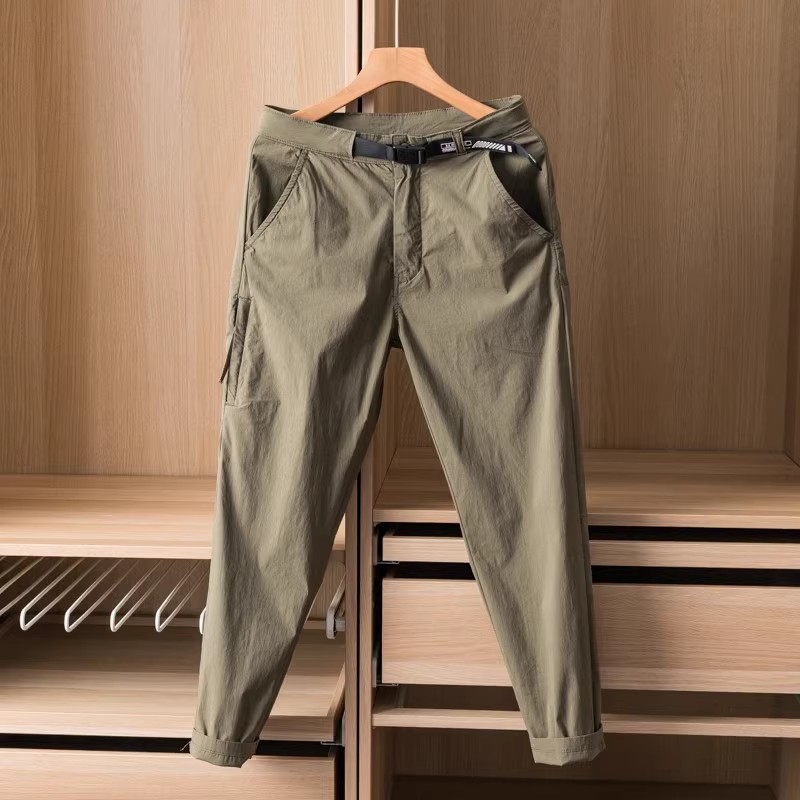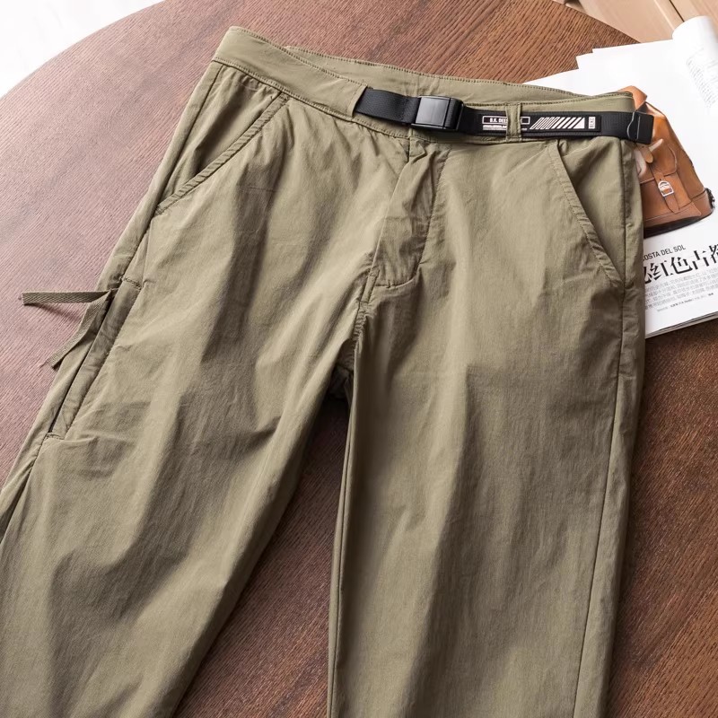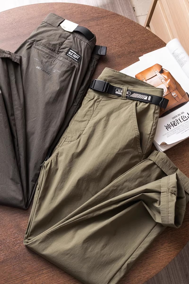 잘 생긴 도둑! 일본 JI 입 직물 여름 얇은 버클 벨트 스트레이트 툴링 캐주얼 팬츠 스트레치 슬림 핏 바지