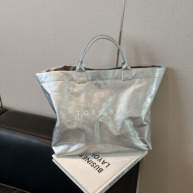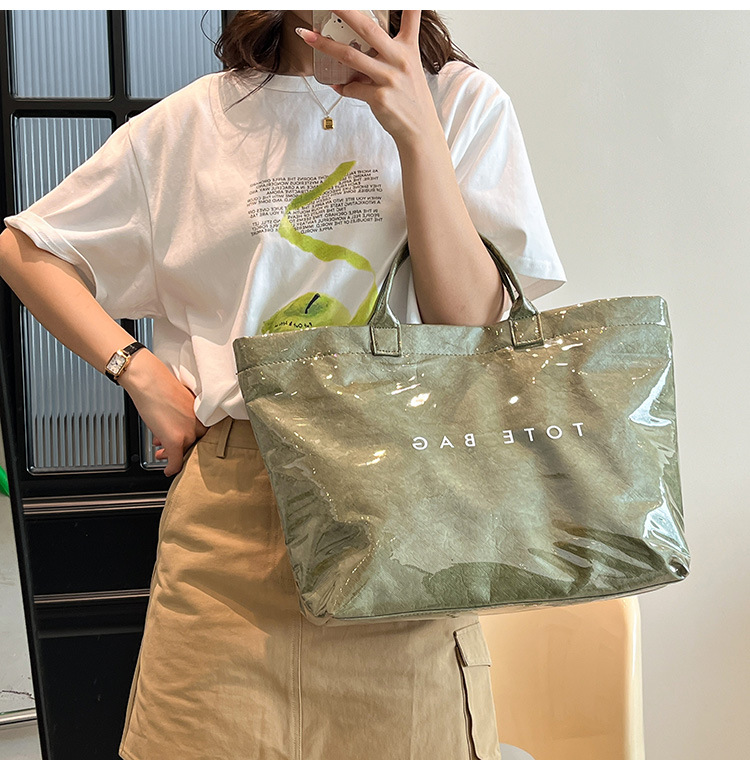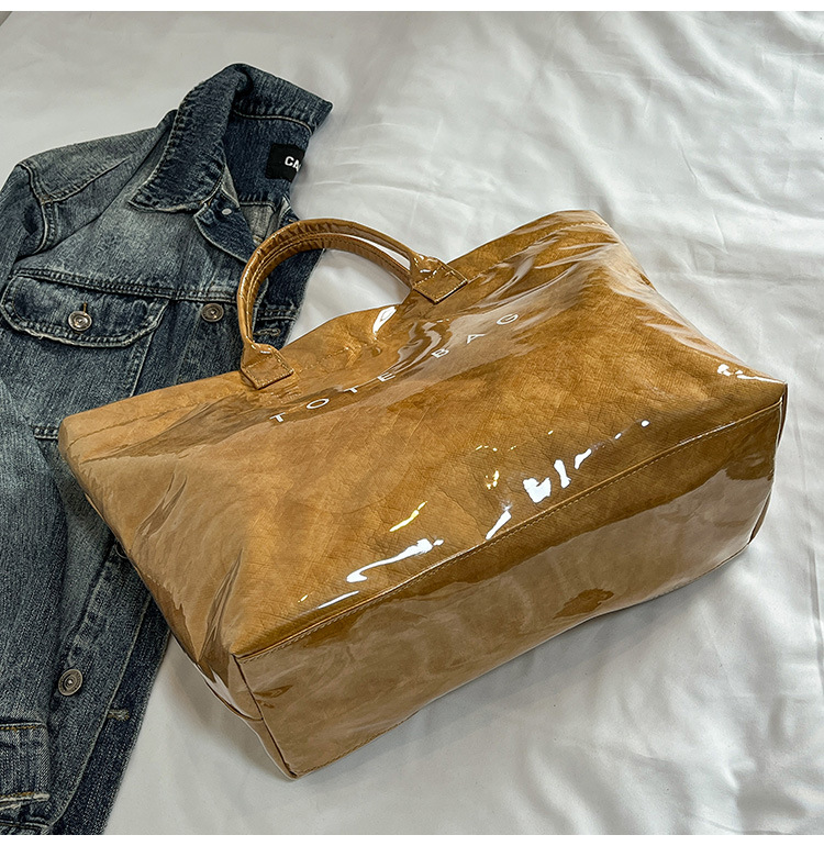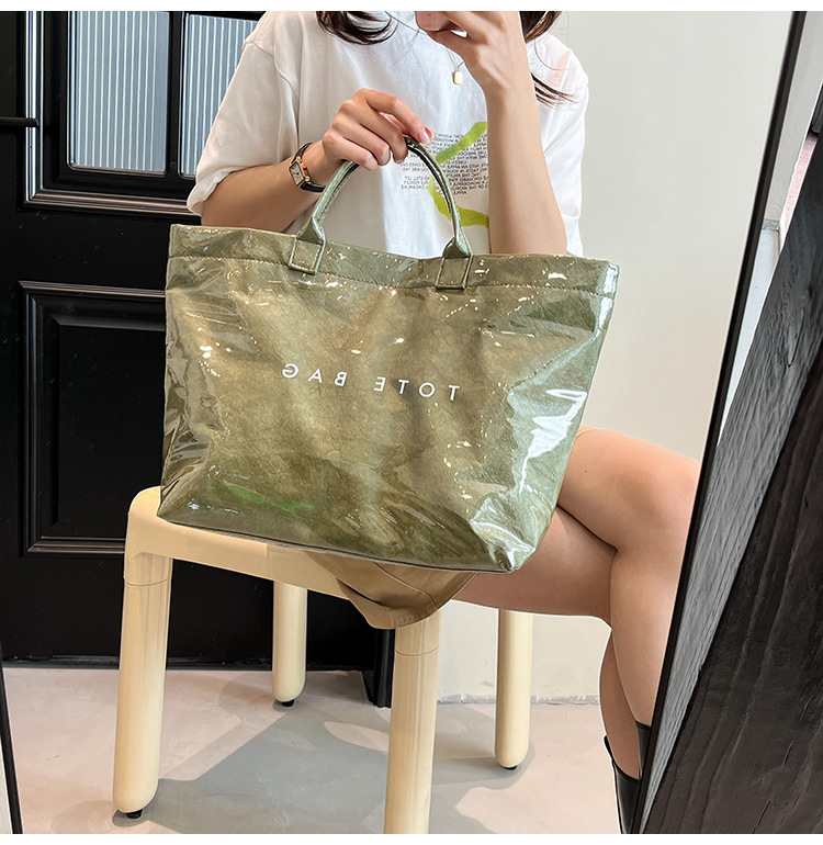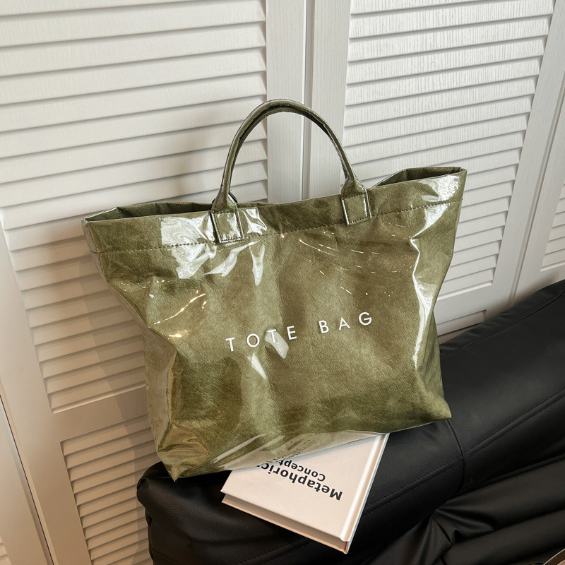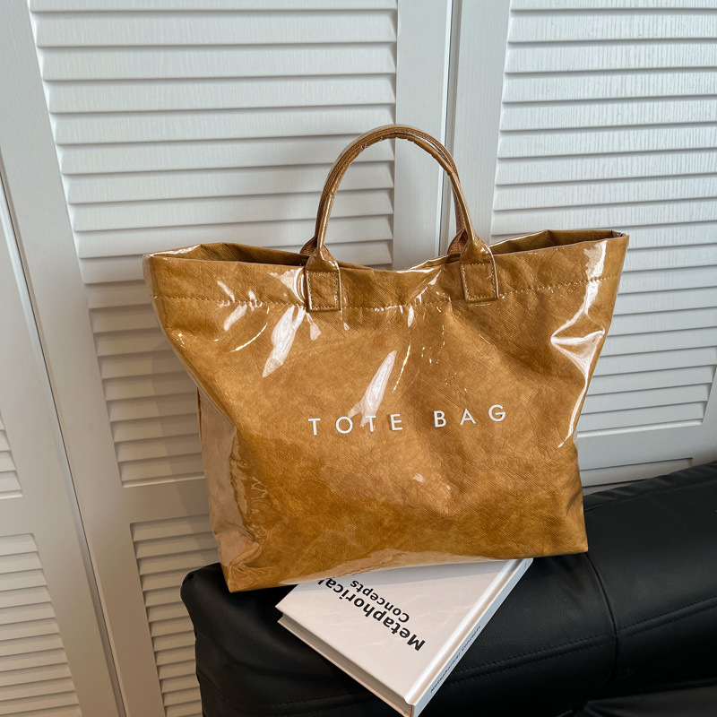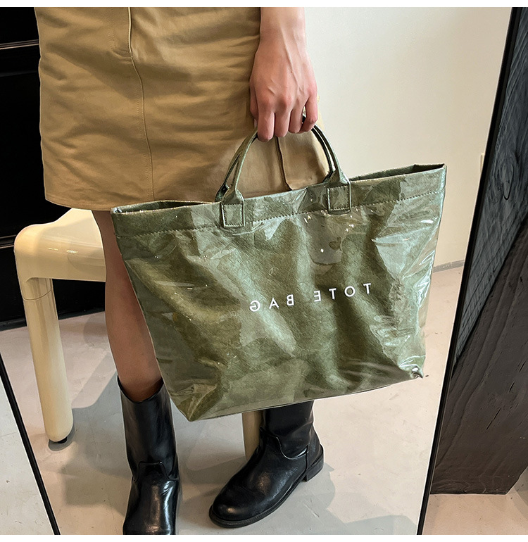 국경 간 크래프트 종이 젤리 방수 가방 여성 2025 새로운 레트로 통근 대용량 여행 가방 토트 백