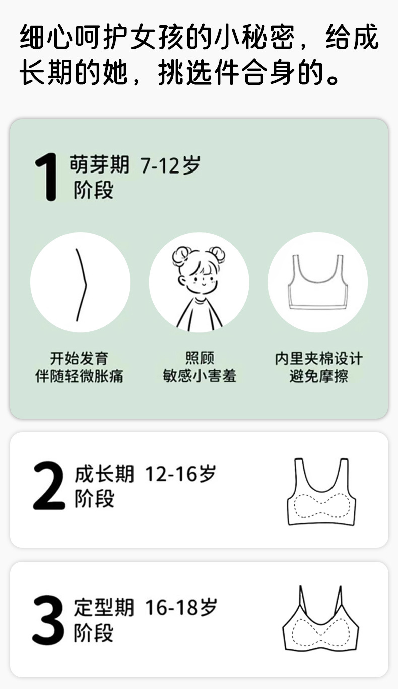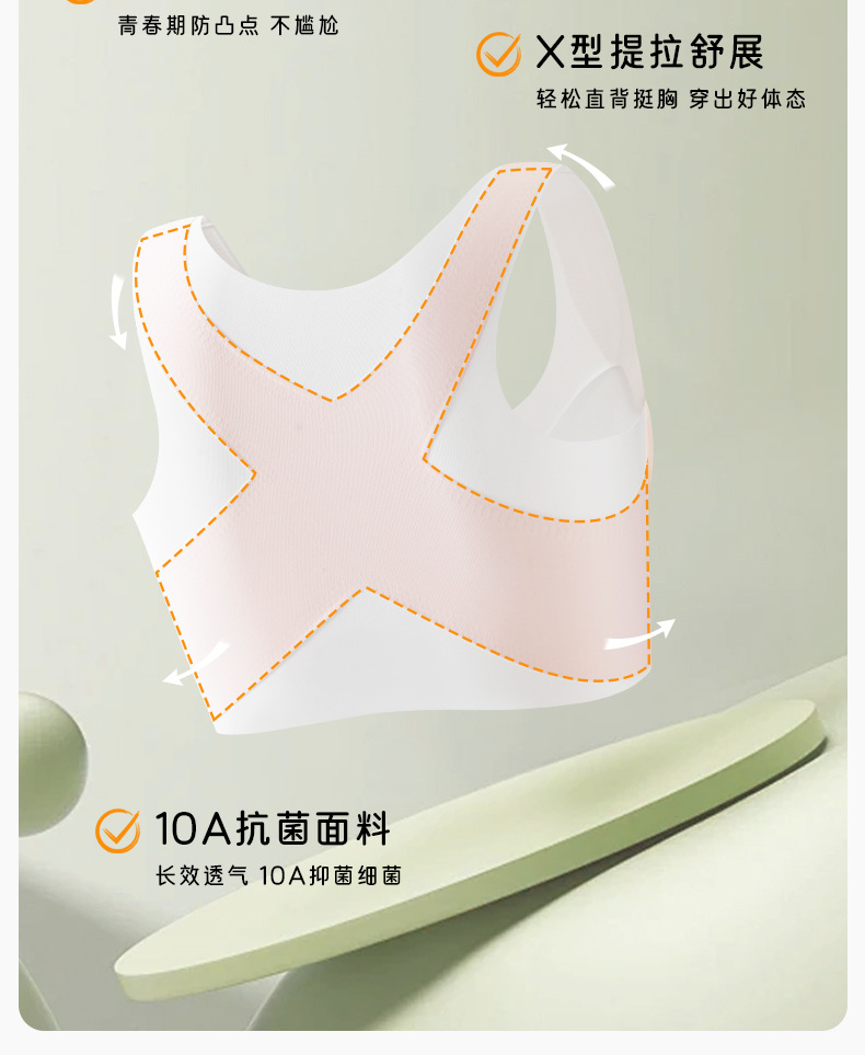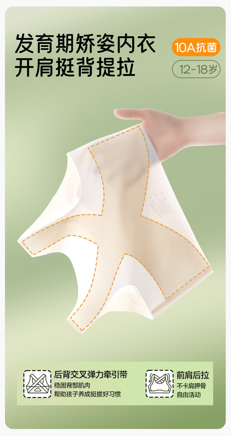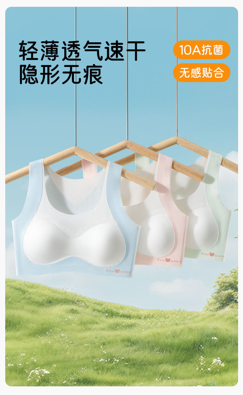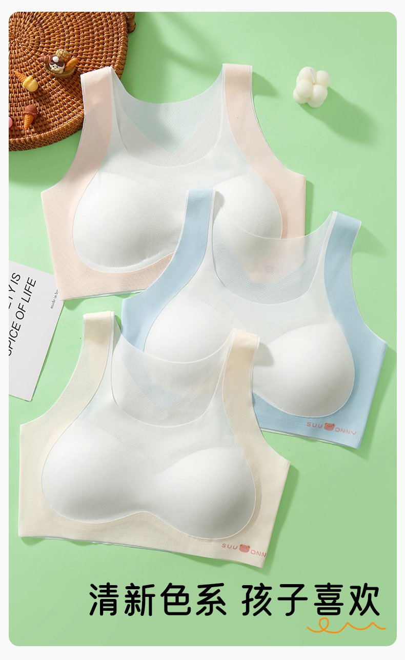 여아 브라, 발달기 속옷, 스포츠 심리스 아이스 실크, 고등학생, 중학생, 사춘기 여아 조끼, 여름 얇은스토어 가기