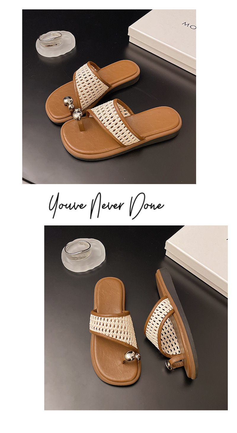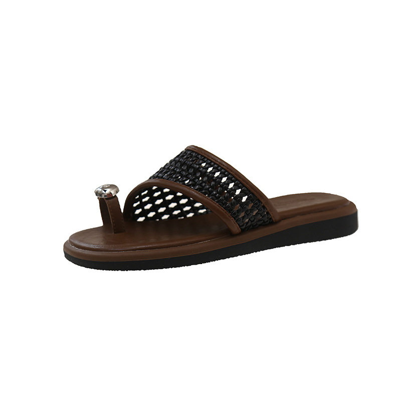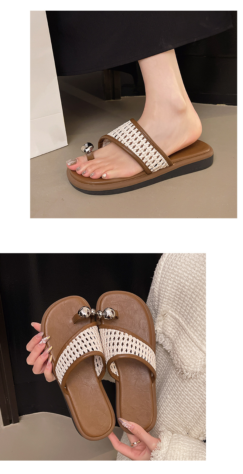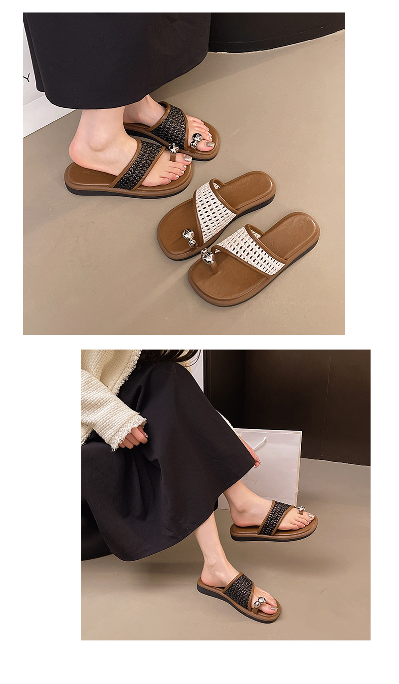 2025 년 여름 샤넬 스타일 요정 슬리퍼 비치 플랫 스퀸 발가락 샌들