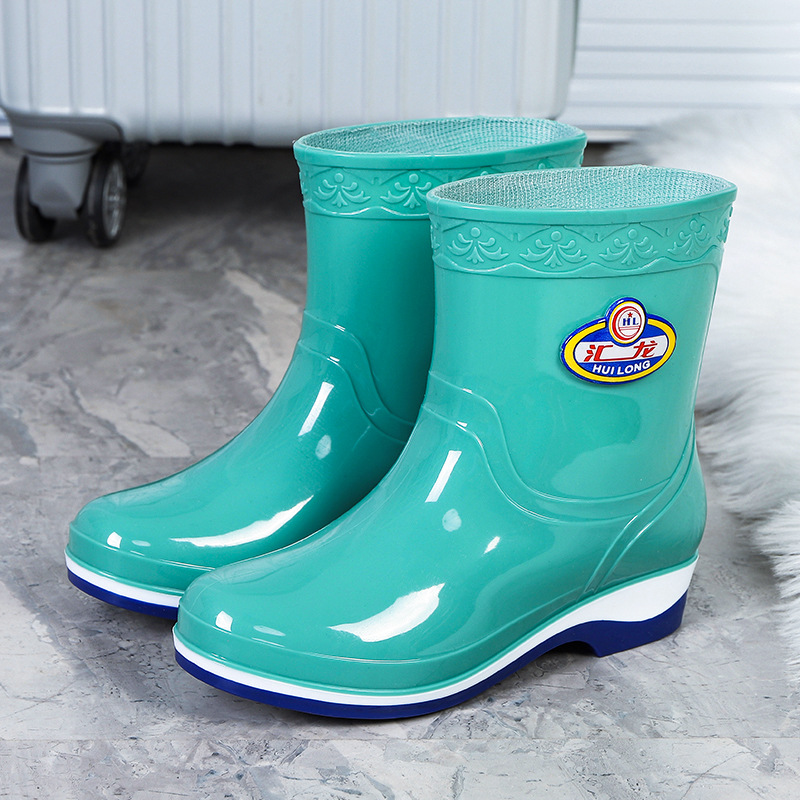 Huilong 패션 중간 튜브 짧은 튜브 장화 방수 미끄럼 방지 주방 요리사 고무 신발 물 신발 여름 산 및 알칼리 방지 도매