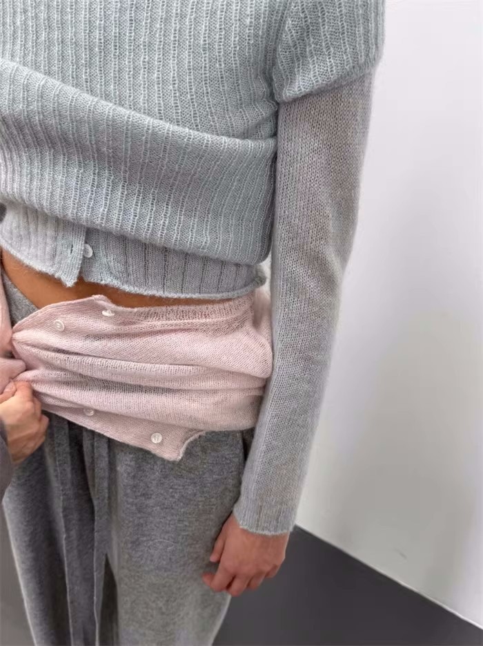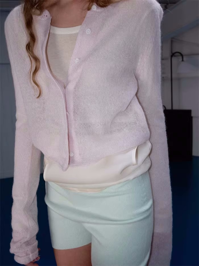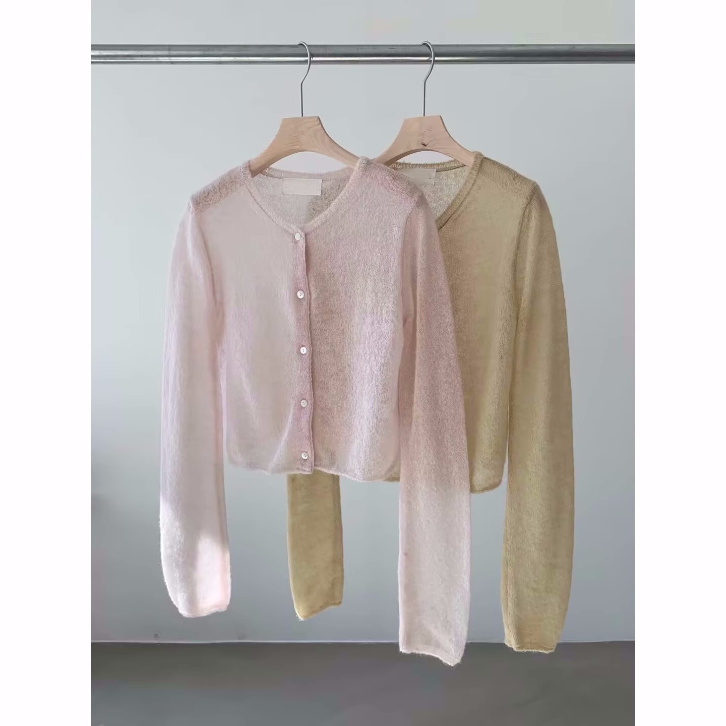 재고 한국 동대문 야채 봄과 여름 새로운 안개 핑크 플러스 여성용 긴 소매 니트 카디건스토어 가기
