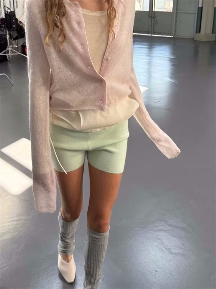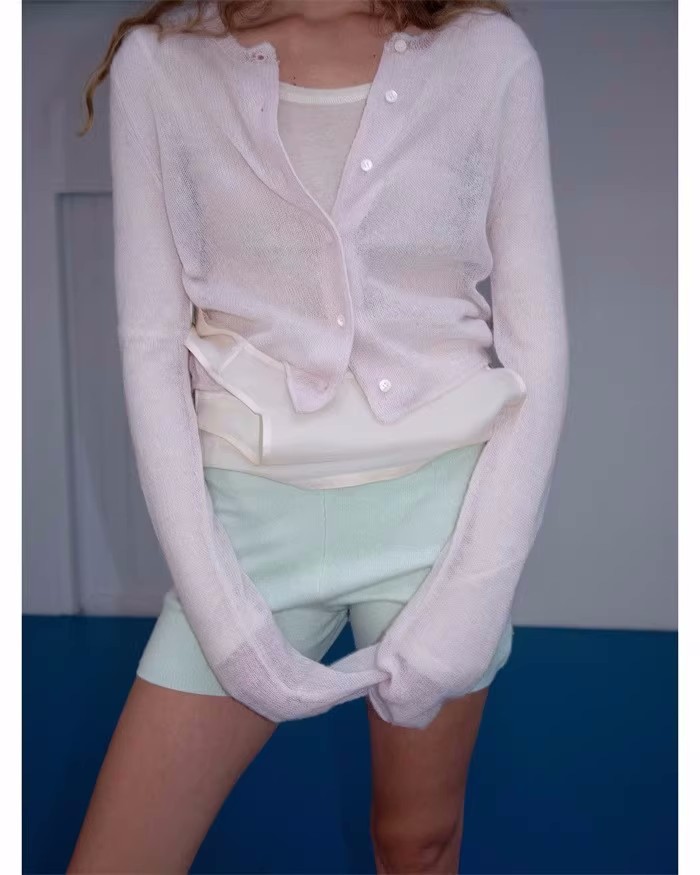 재고 한국 동대문 야채 봄과 여름 새로운 안개 핑크 플러스 여성용 긴 소매 니트 카디건
