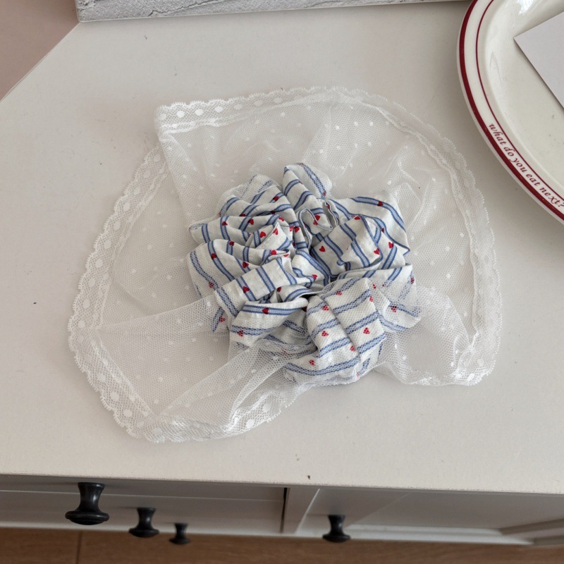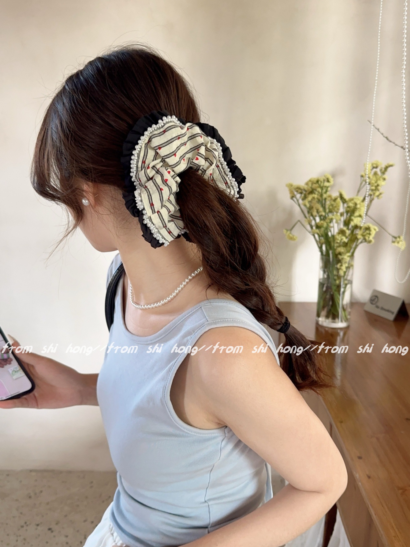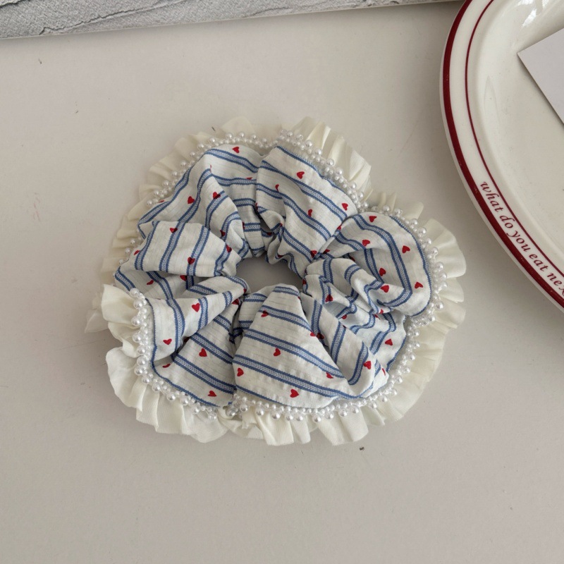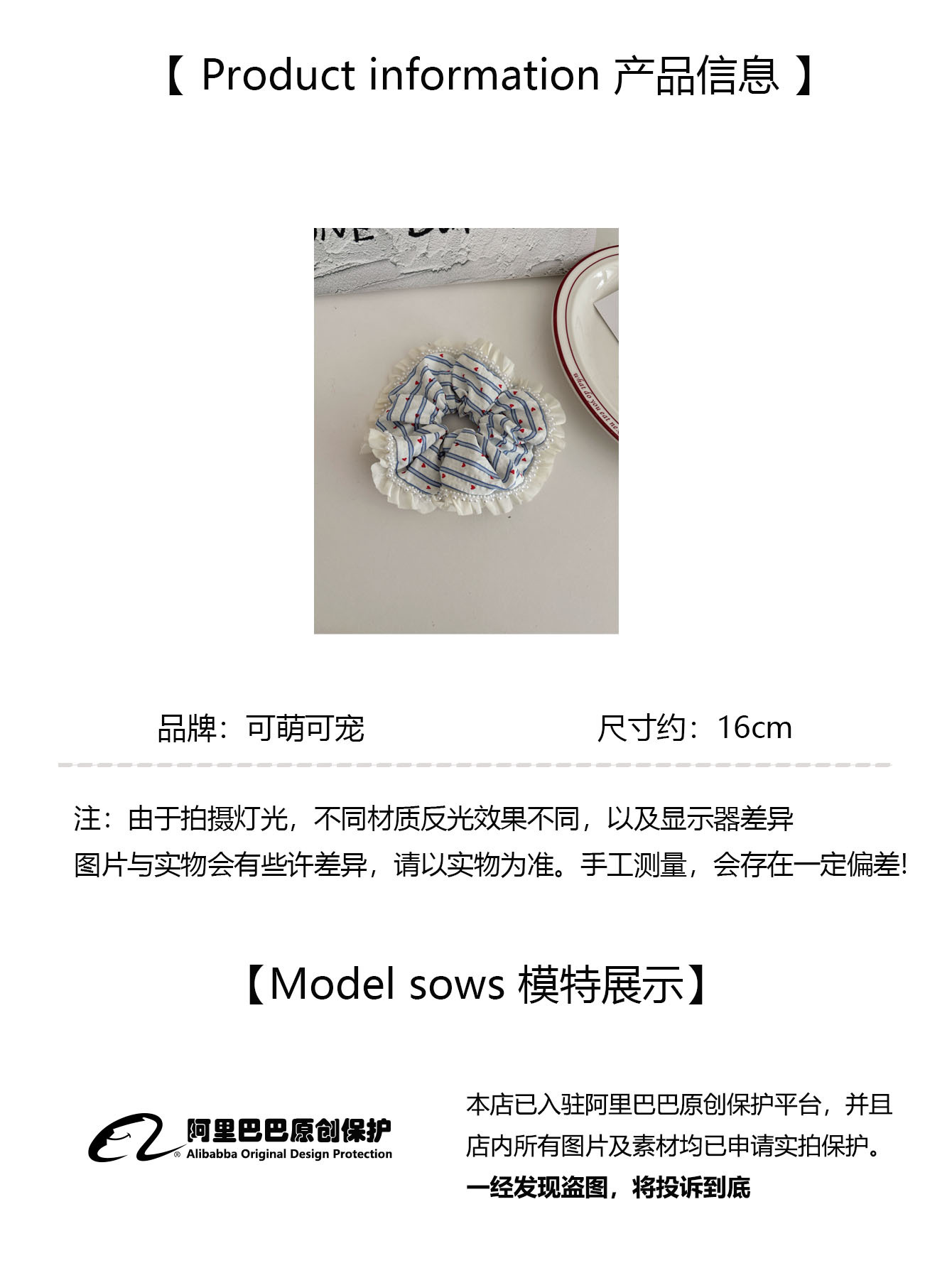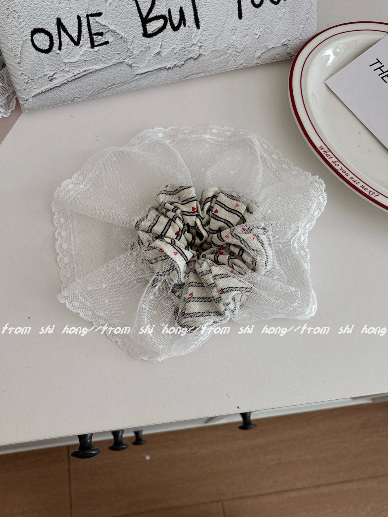프랑스 발레 스타일 레드 하트 스트라이프 레이스 대형 장내 헤어 링 2025 새로운 봄과 여름 달콤하고 부드러운 헤어 로프스토어 가기