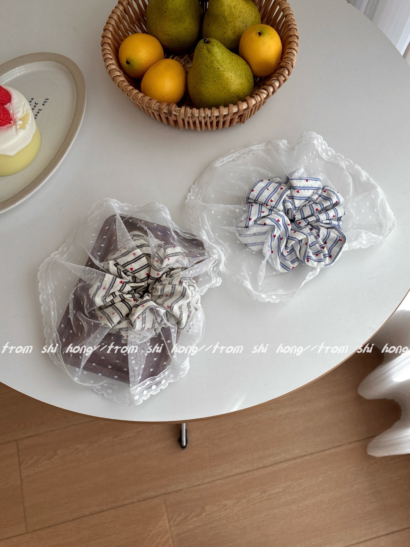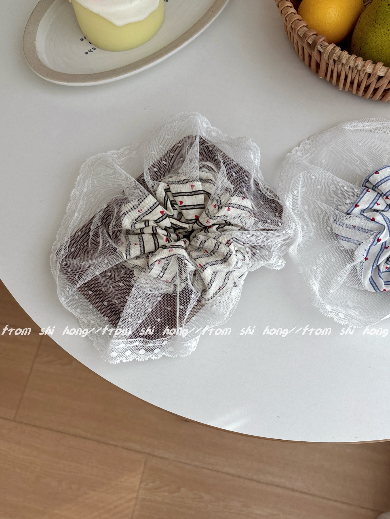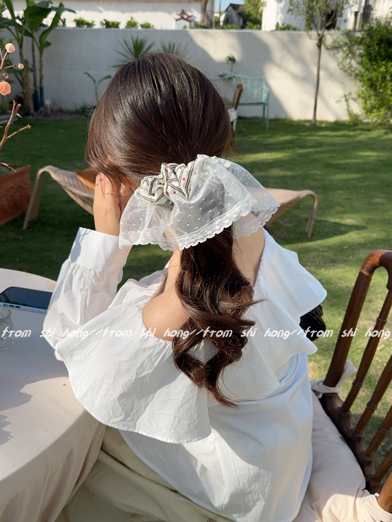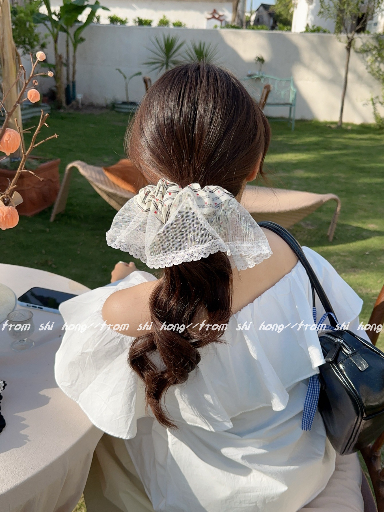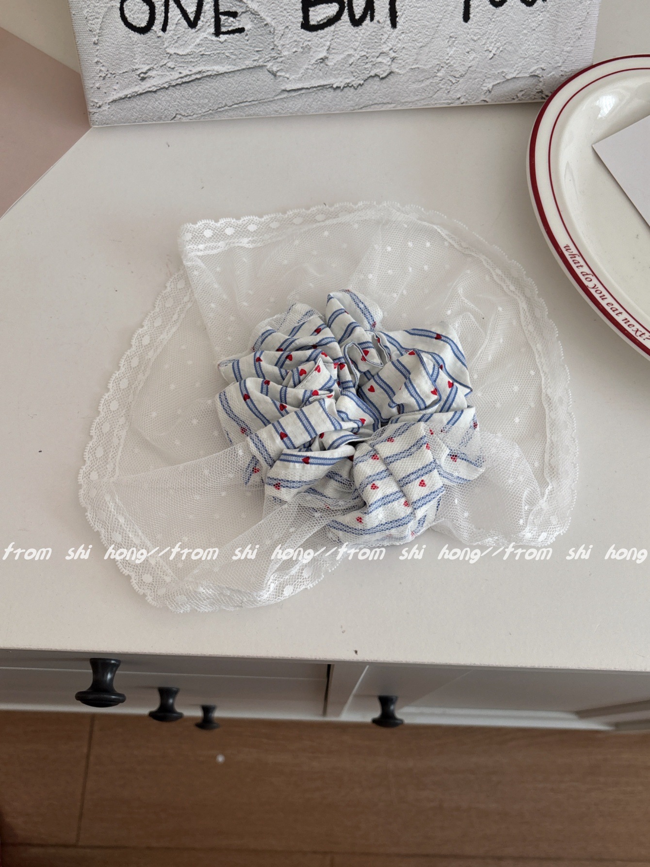프랑스 발레 스타일 레드 하트 스트라이프 레이스 대형 장내 헤어 링 2025 새로운 봄과 여름 달콤하고 부드러운 헤어 로프스토어 가기