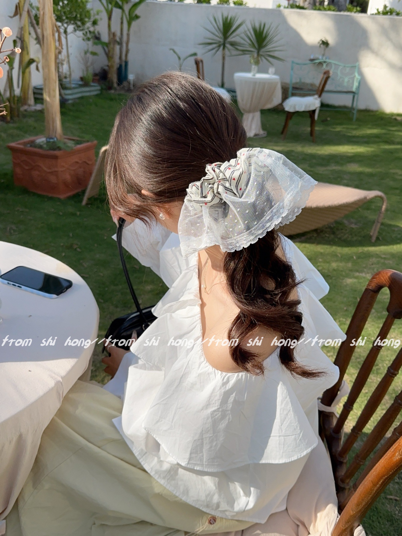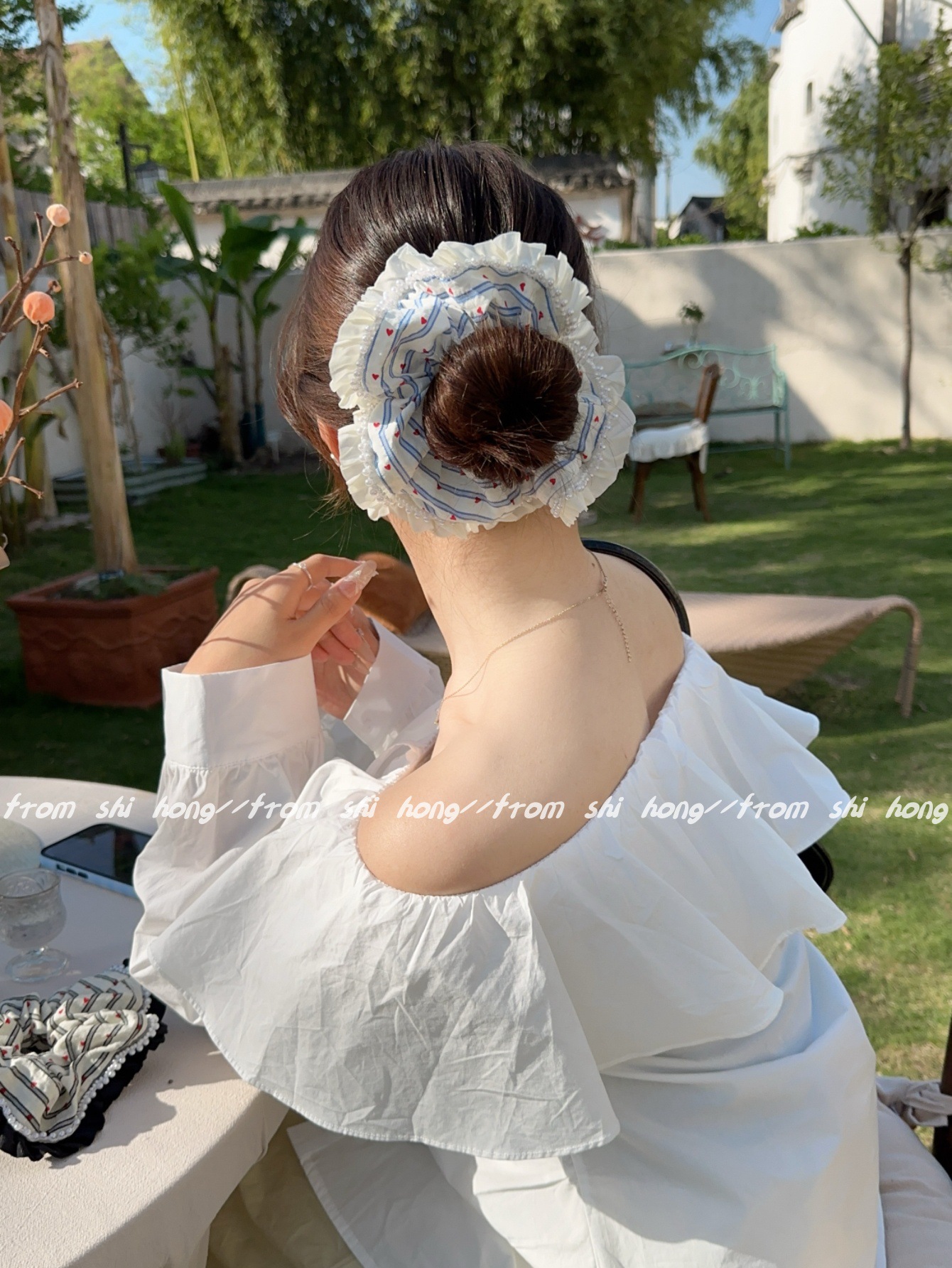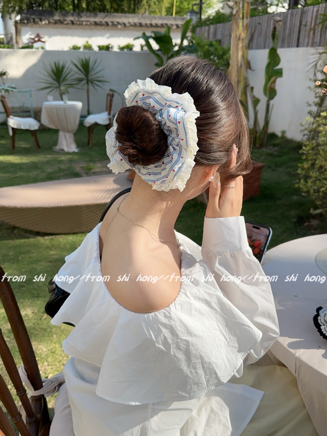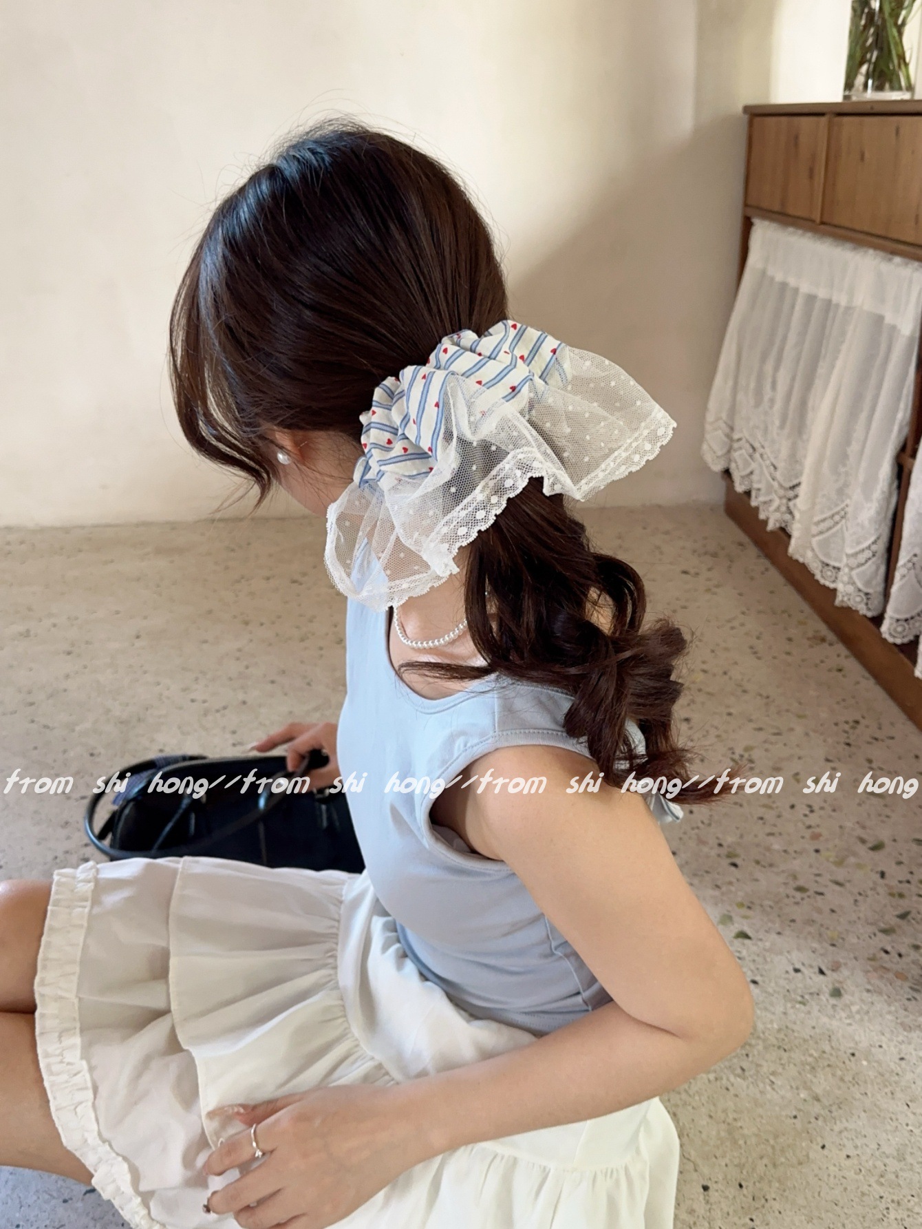 프랑스 발레 스타일 레드 하트 스트라이프 레이스 대형 장내 헤어 링 2025 새로운 봄과 여름 달콤하고 부드러운 헤어 로프스토어 가기