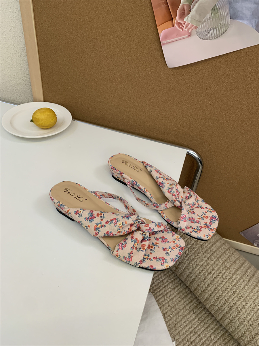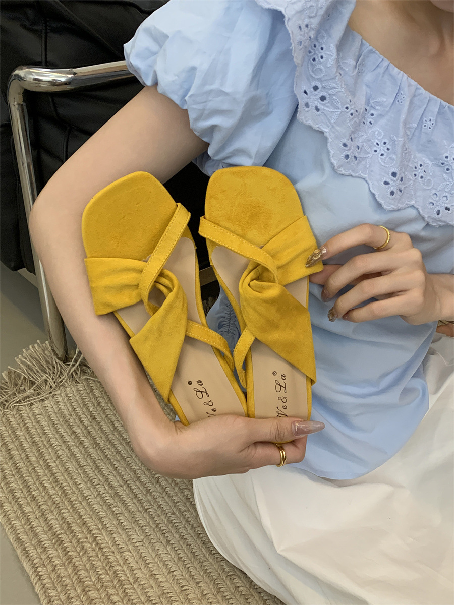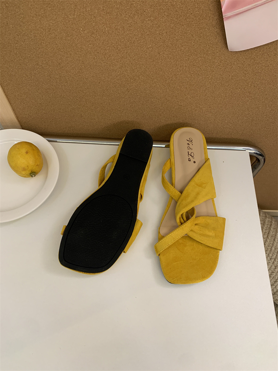 한국식 스웨이드 스퀘어 발가락 크로스 여성용 발가락 반 슬리퍼 외부 신형 봄과 여름 2025 플랫 게으른 샌들스토어 가기