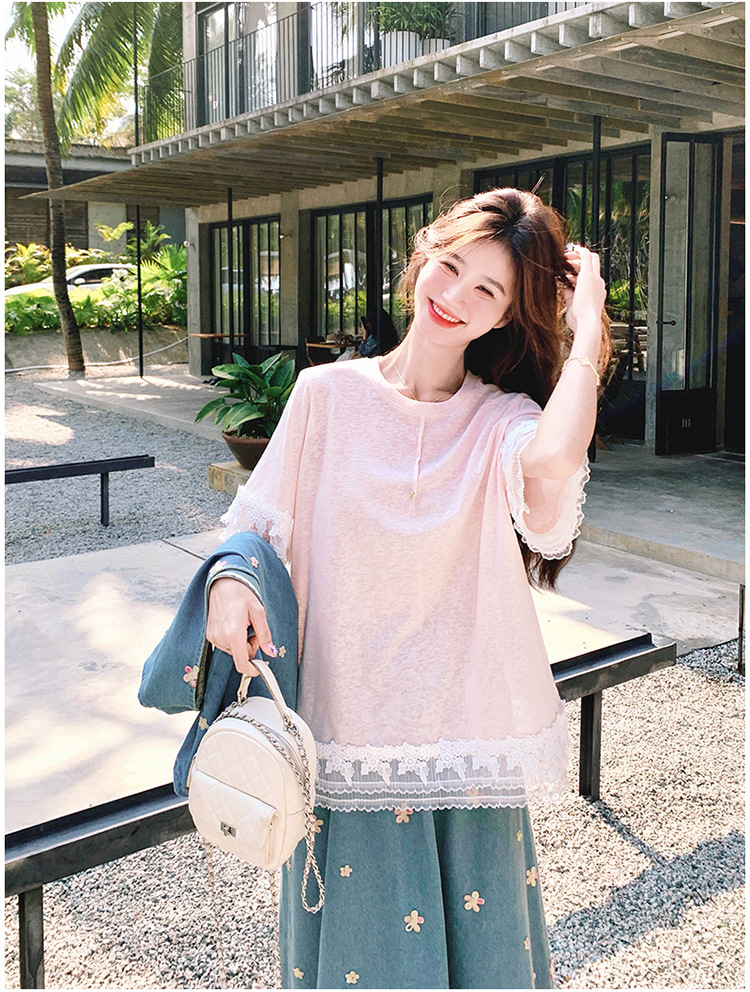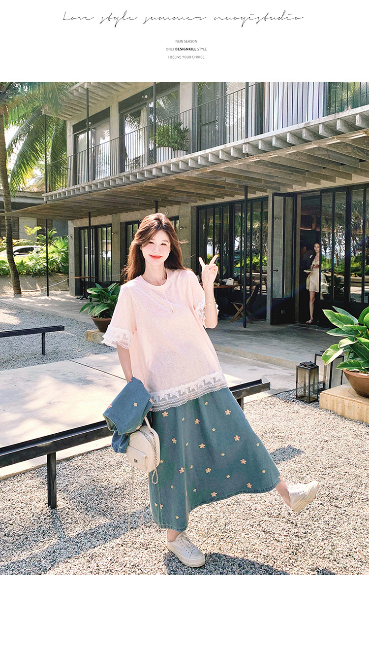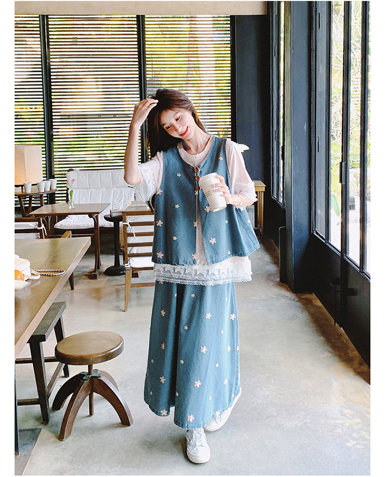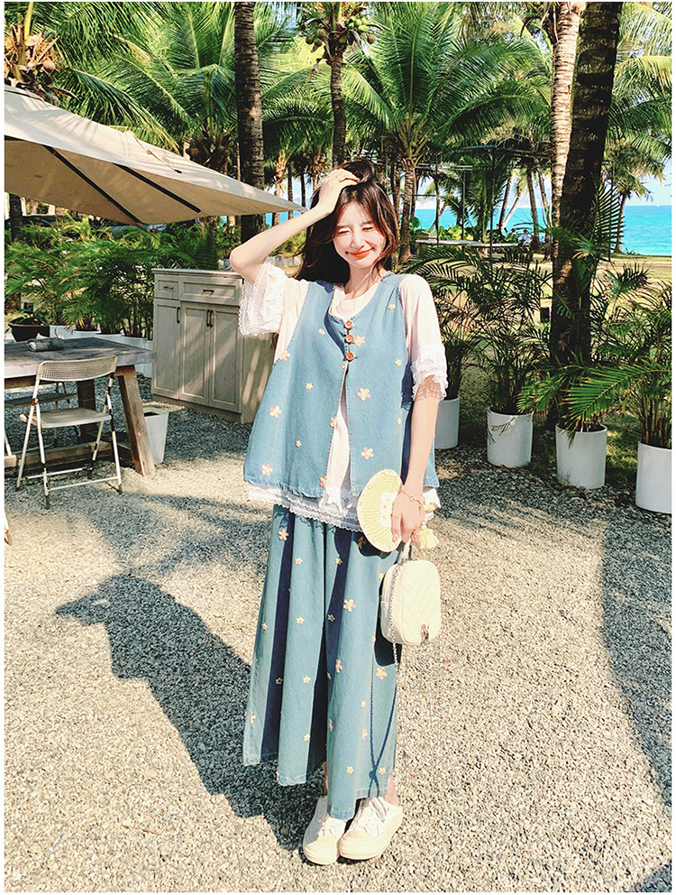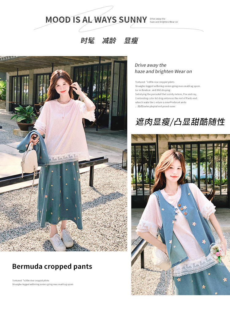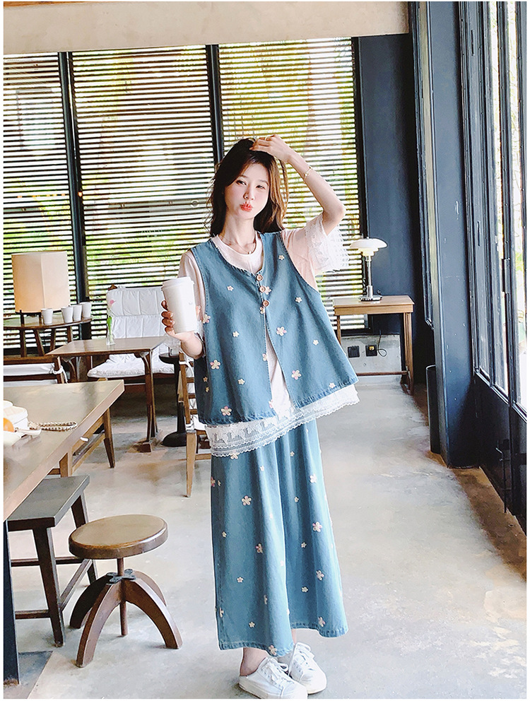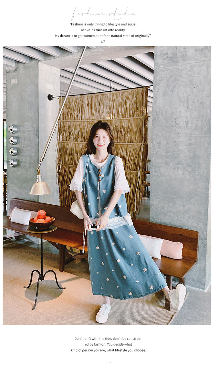리얼 샷 소금 달콤한 데님 자수 조끼 3 피스 세트 여성 여름 새로운 레이스 티셔츠 스커트 세트 원피스스토어 가기