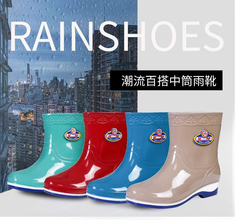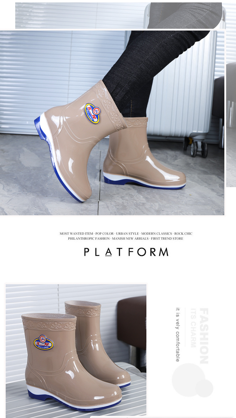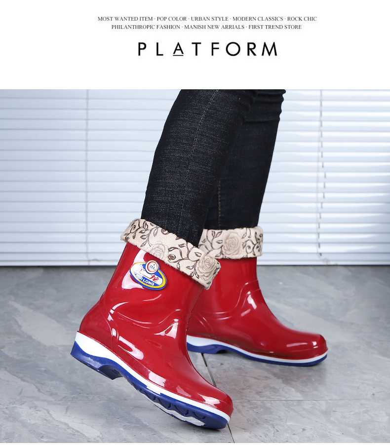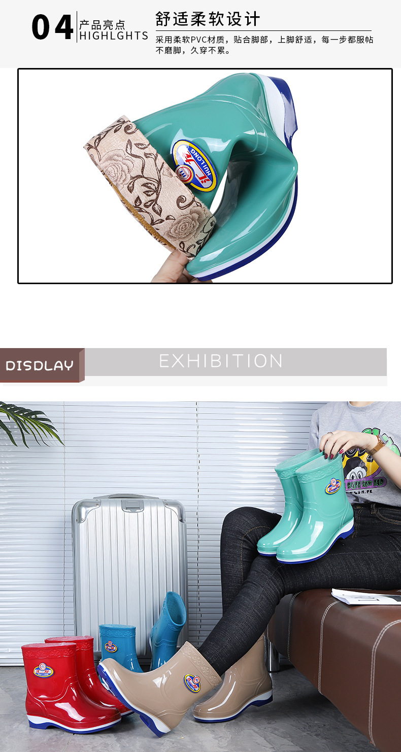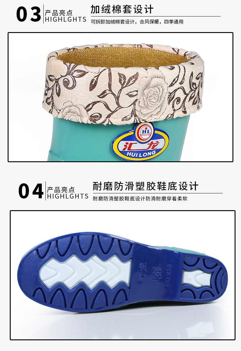 Huilong 공장 직접 판매 여성용 장화 플러스 벨벳 따뜻한 주방 산 및 알칼리 방지 고무 신발 중간 및 낮은 튜브 성인 워터 부츠 내마모성스토어 가기