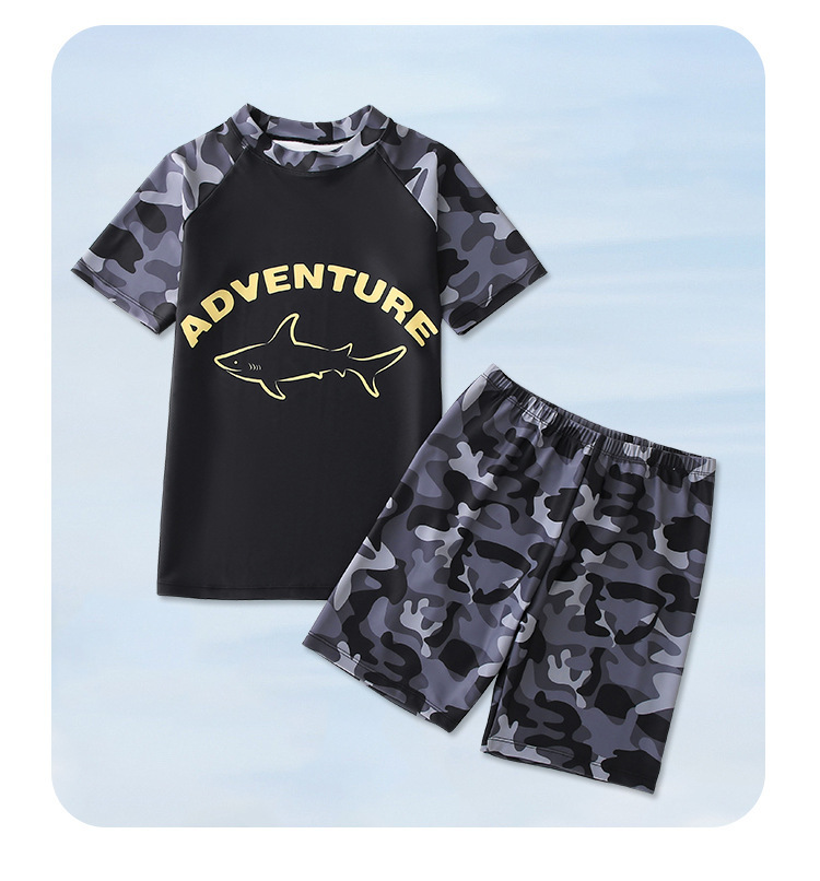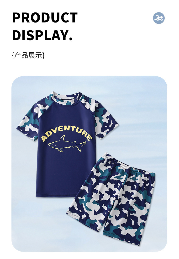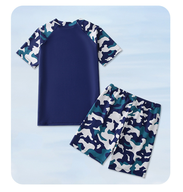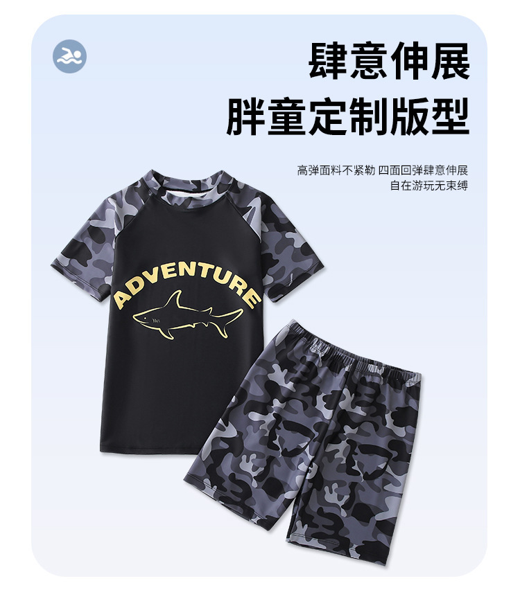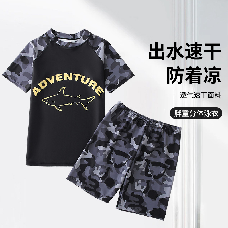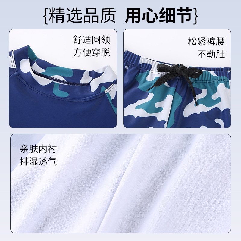 중대형 어린이 청소년과 학생을위한 자외선 차단제 빠른 건조 자외선 차단제 분할 수영복을위한 2025 새로운 소년 확대 반팔 수영 트렁크