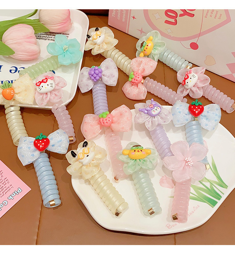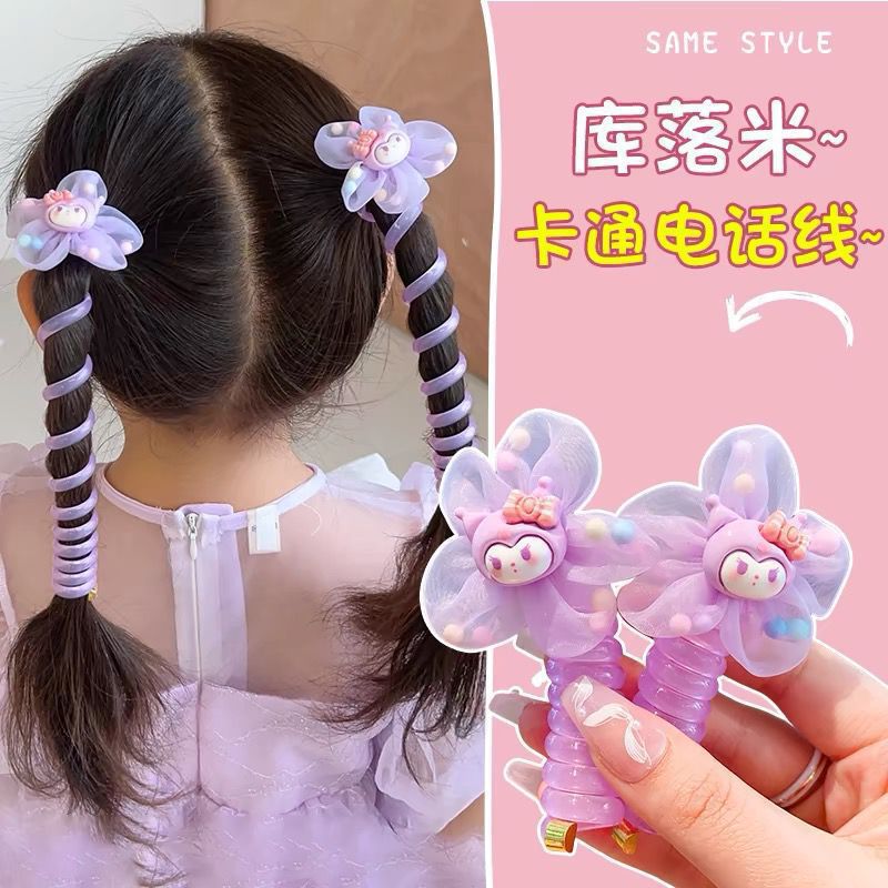 Kulomi 어린이 만화 헤어 링 전화 라인 헤어 로프 소녀 꼰 머리 귀여운 버블 브레이드 높은 탄성 헤어 로프스토어 가기