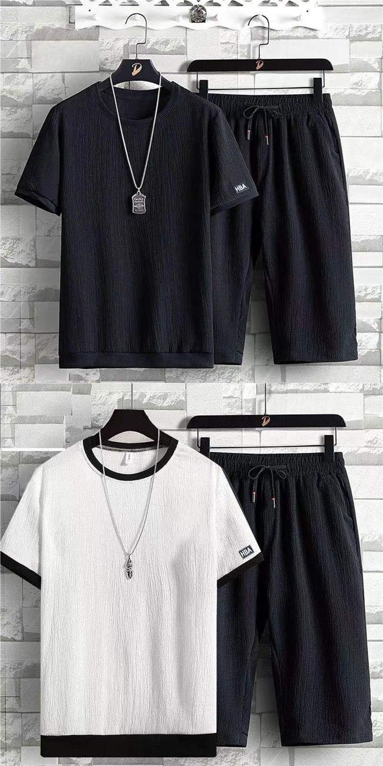아이스 실크 정장 남성 여름 루즈 대형 캐주얼 스포츠 정장 트렌디 브랜드 린넨 남성 반팔 크롭 팬츠 투피스 세트스토어 가기