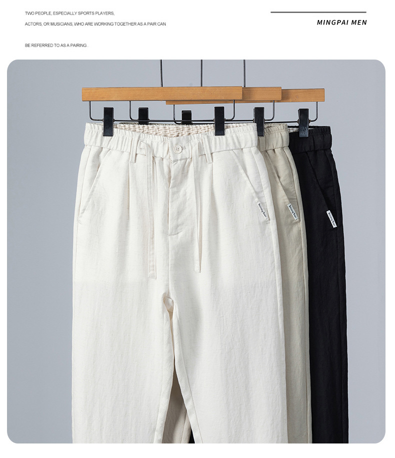 2025 여름 새로운 슈퍼 편안한 면화 및 리넨 캐주얼 바지 남자 여름 간단한 느슨한 통기성 리넨 발목 길이 바지스토어 가기