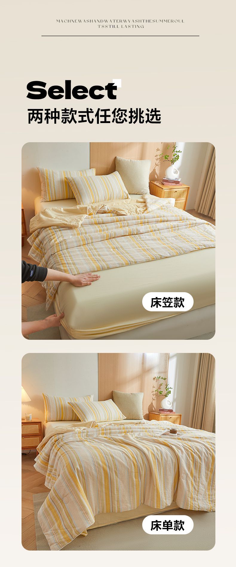 • 1.5m 매트리스 커버 여름 이불 4종 세트 [여름 이불 200*230cm+ 매트리스 커버 150X200cm+ 베갯잇*2]