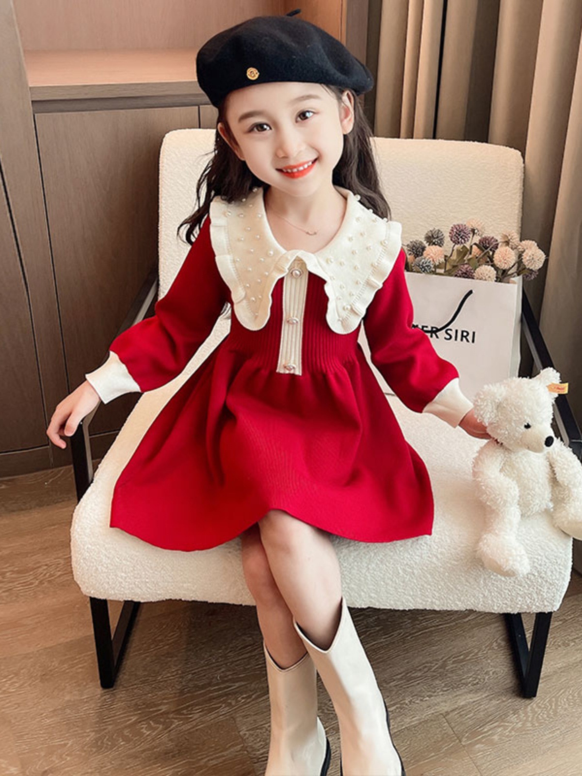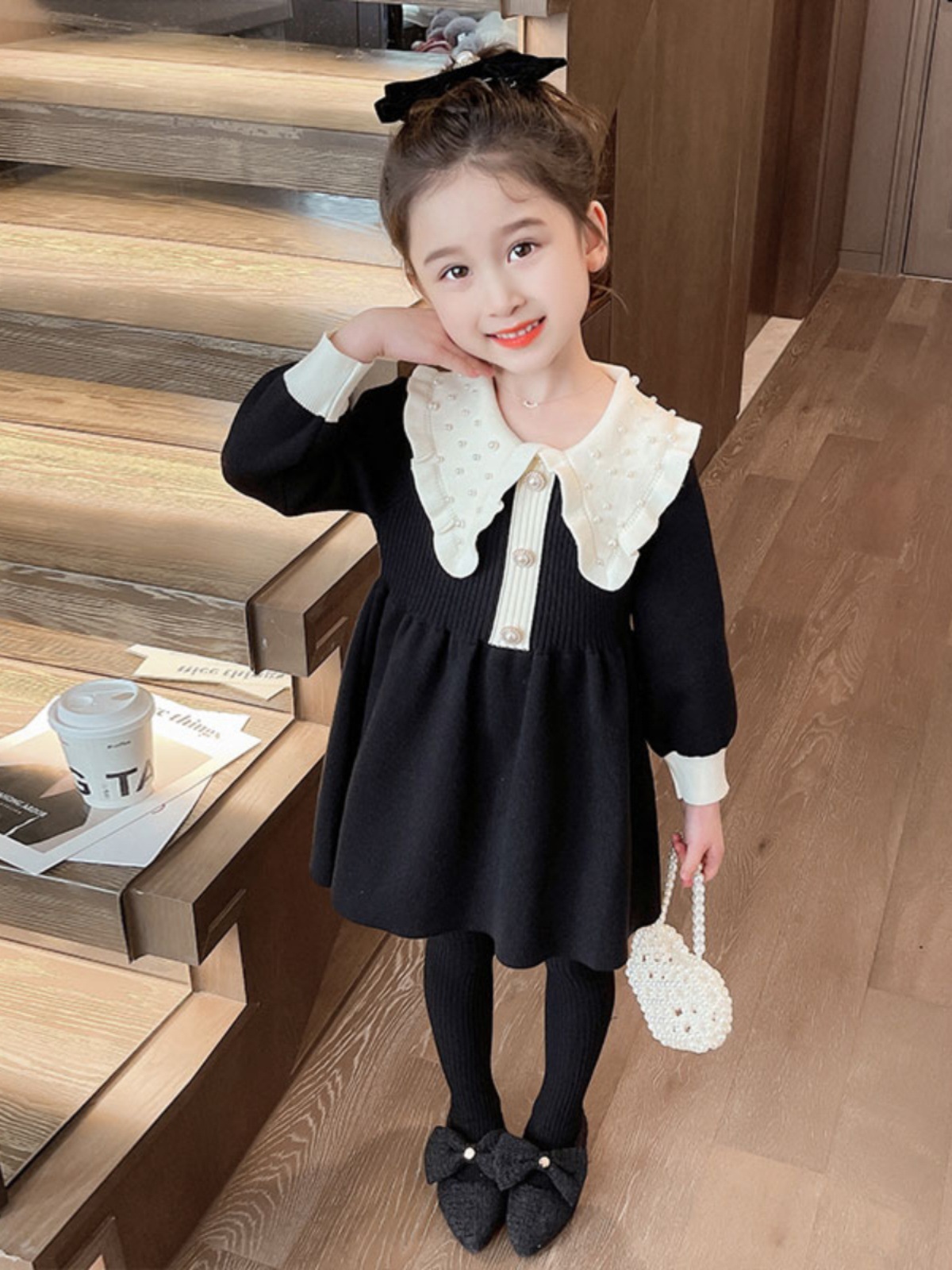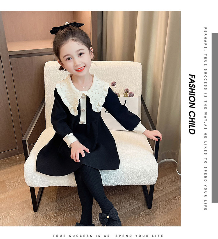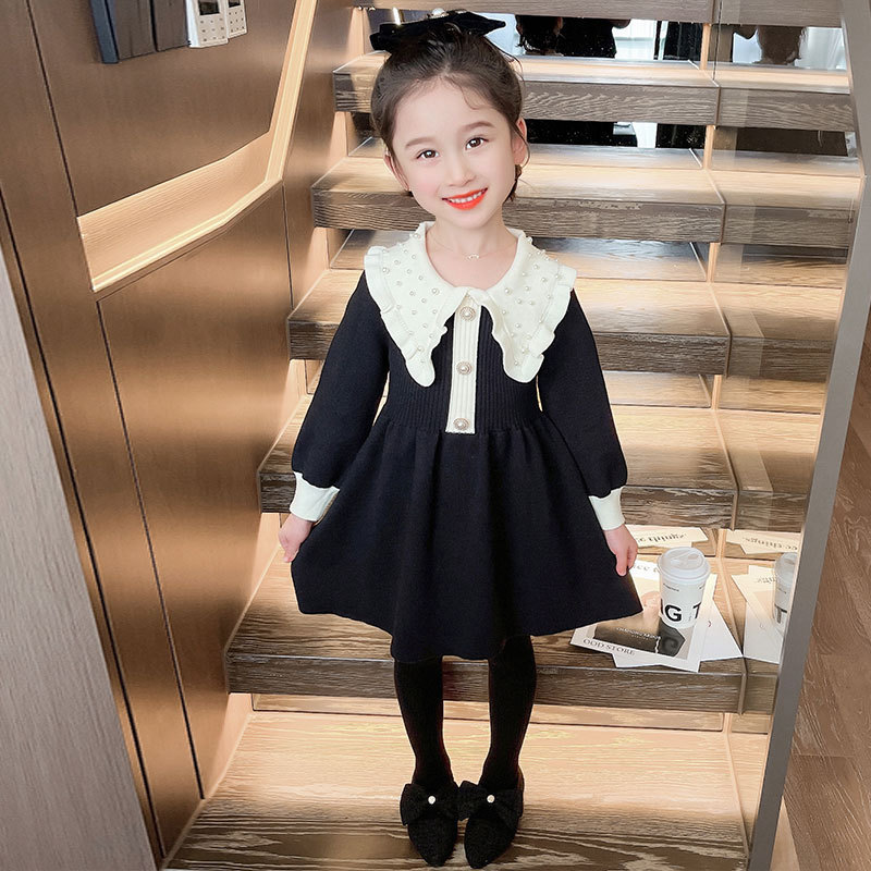 2025 가을 신상 드레스 긴 소매 비즈 칼라 아기 패션 드레스 어린 소녀 공주 어린이 스웨터 드레스