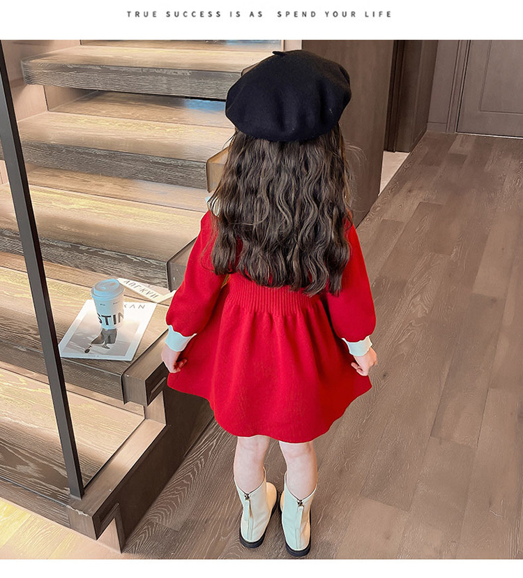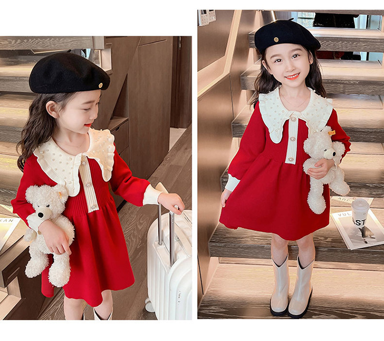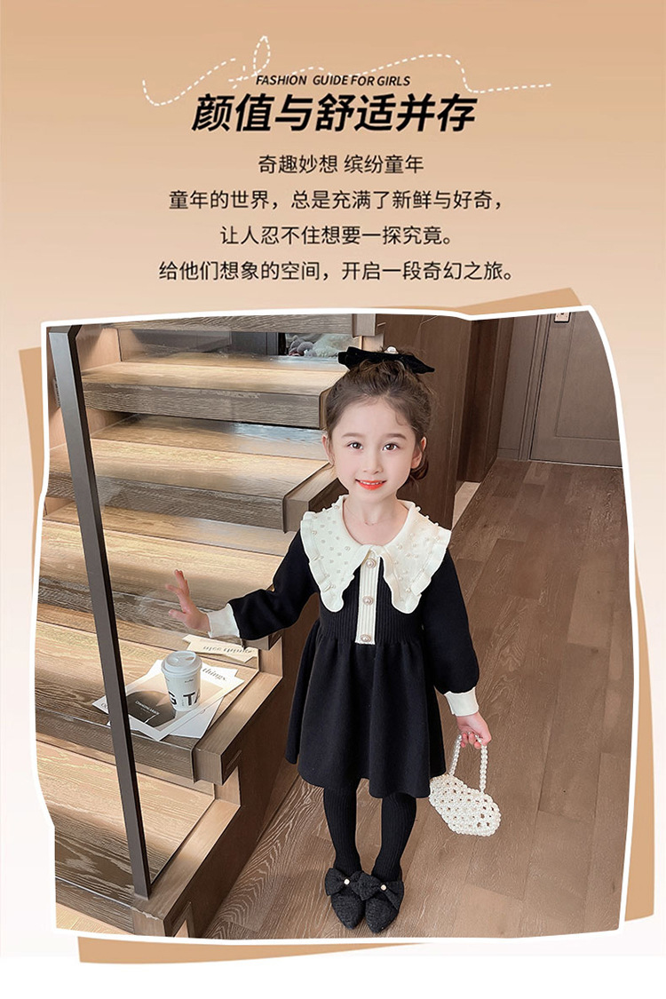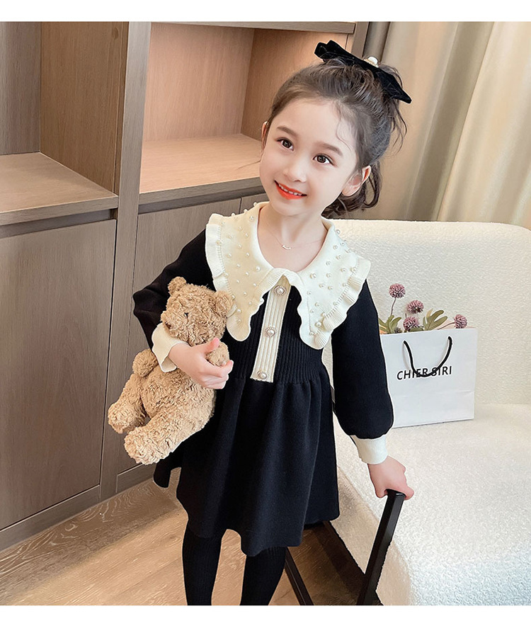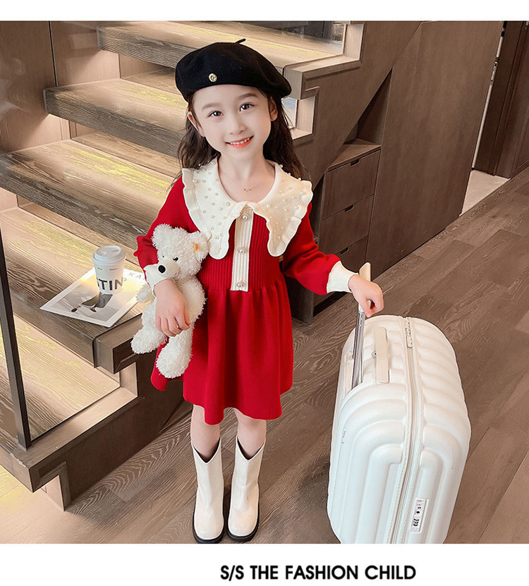 2025 가을 신상 드레스 긴 소매 비즈 칼라 아기 패션 드레스 어린 소녀 공주 어린이 스웨터 드레스