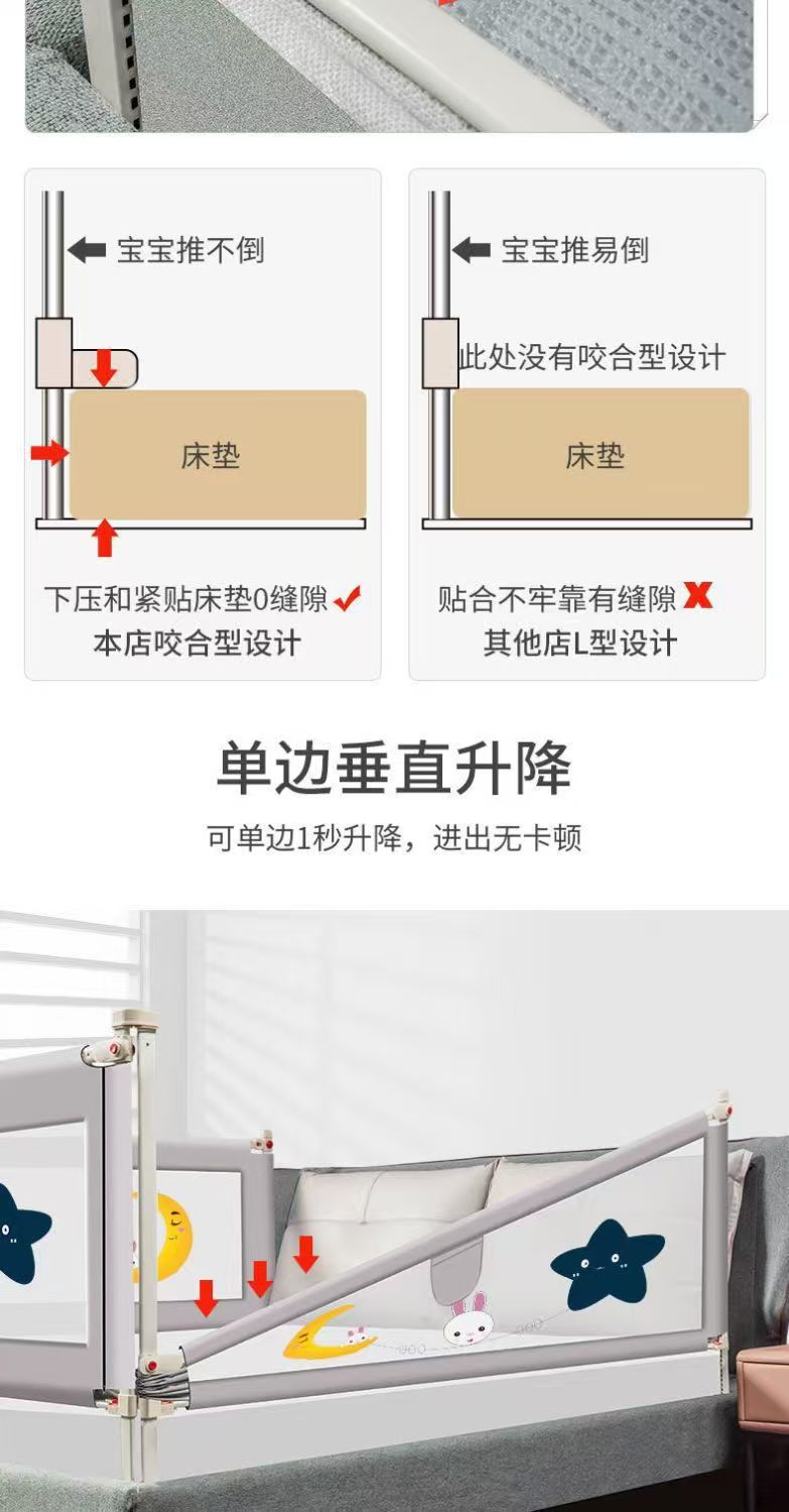 어린이 침대 울타리, 아기 낙하 방지 울타리, 어린이 침대 옆 낙하 방지 범퍼, 아기 높이 침대 울타리 한쪽스토어 가기