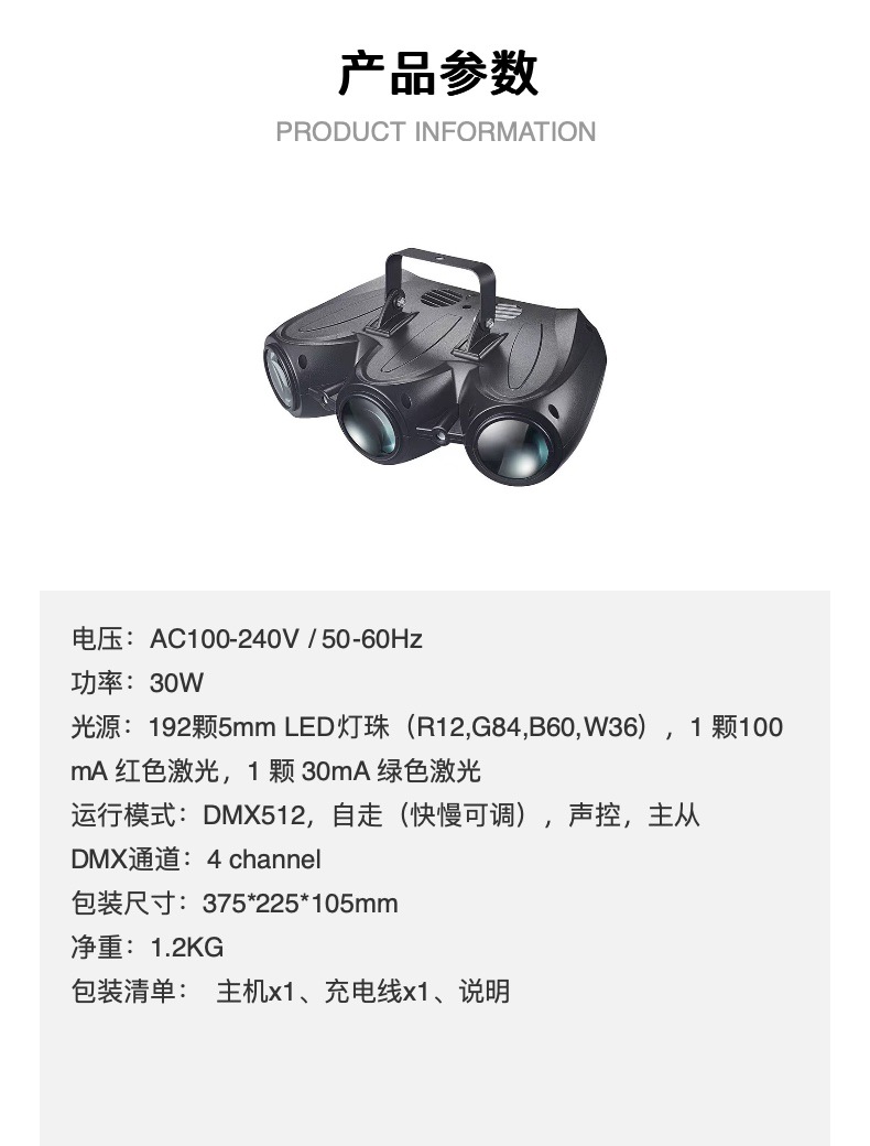 • 30W, 음성 제어, 레이저, DMX512