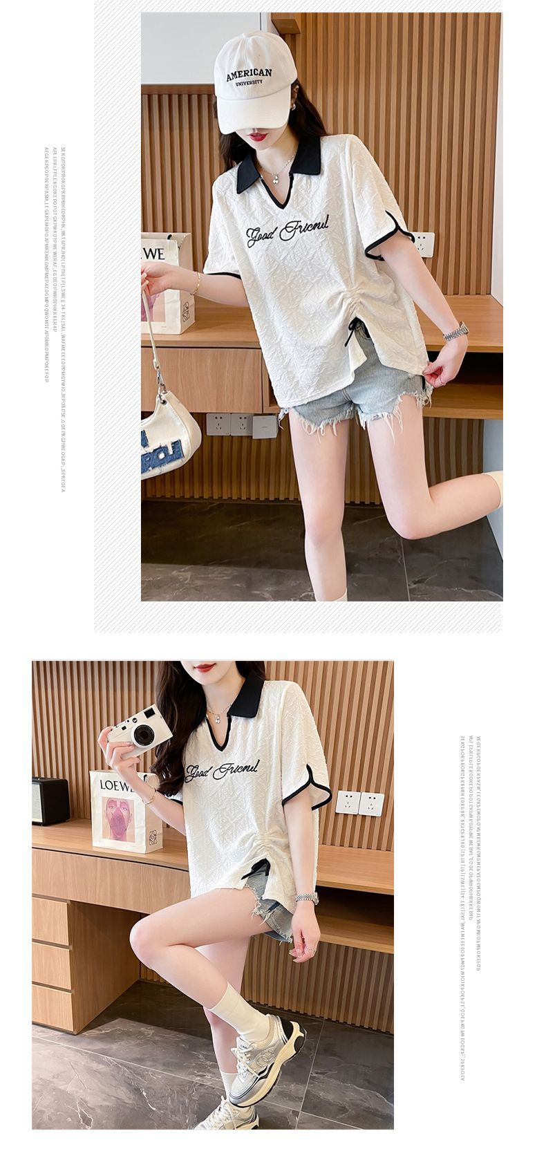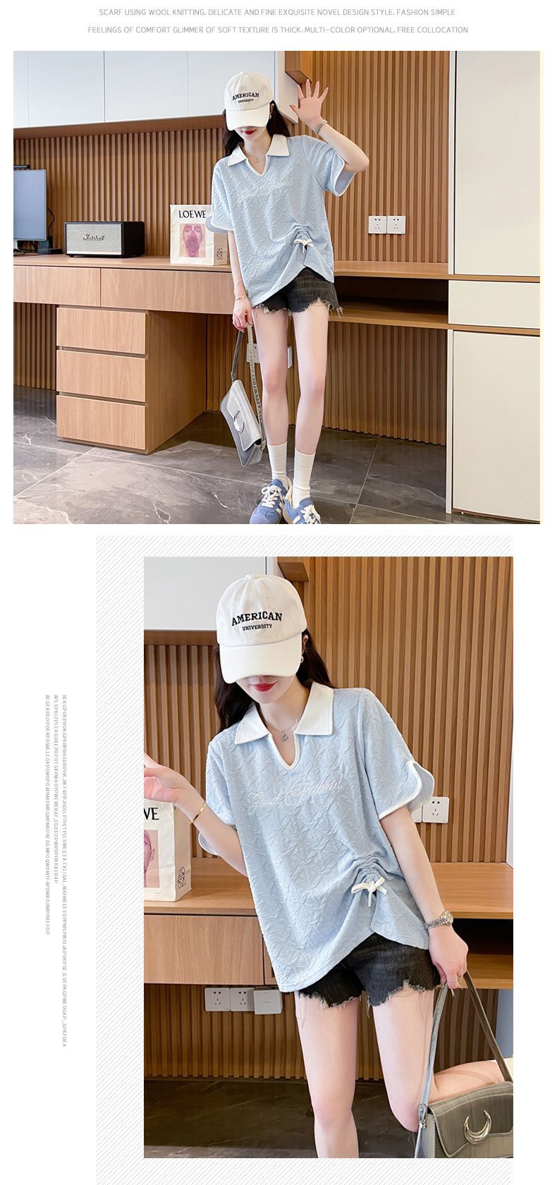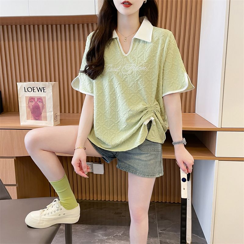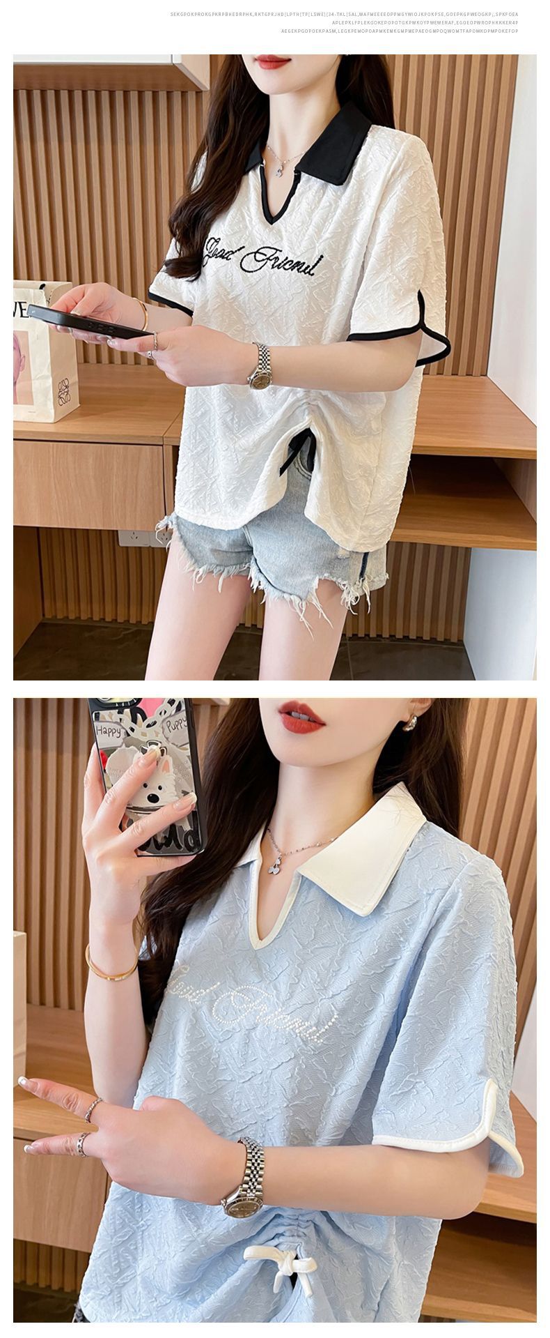 불규칙한 폴로 칼라 반팔 티셔츠 여성 여름 2025 새로운 느슨한 작은 남자 디자인 센스 밍크 탑 옷스토어 가기