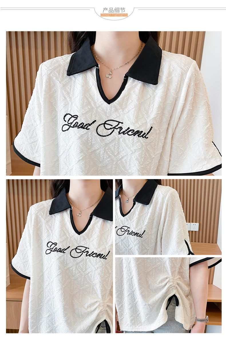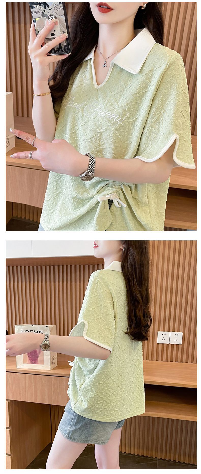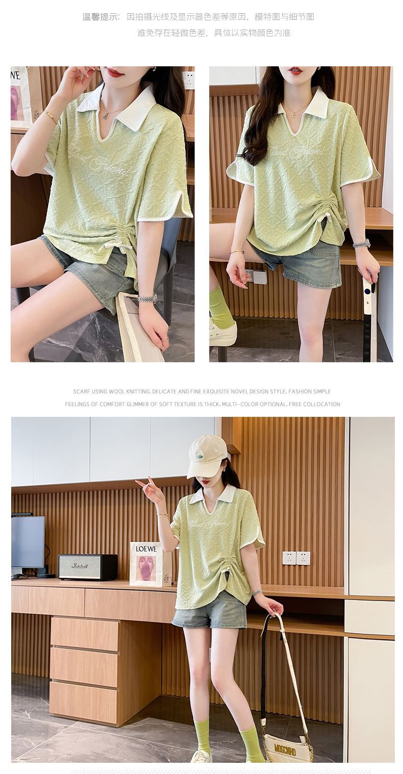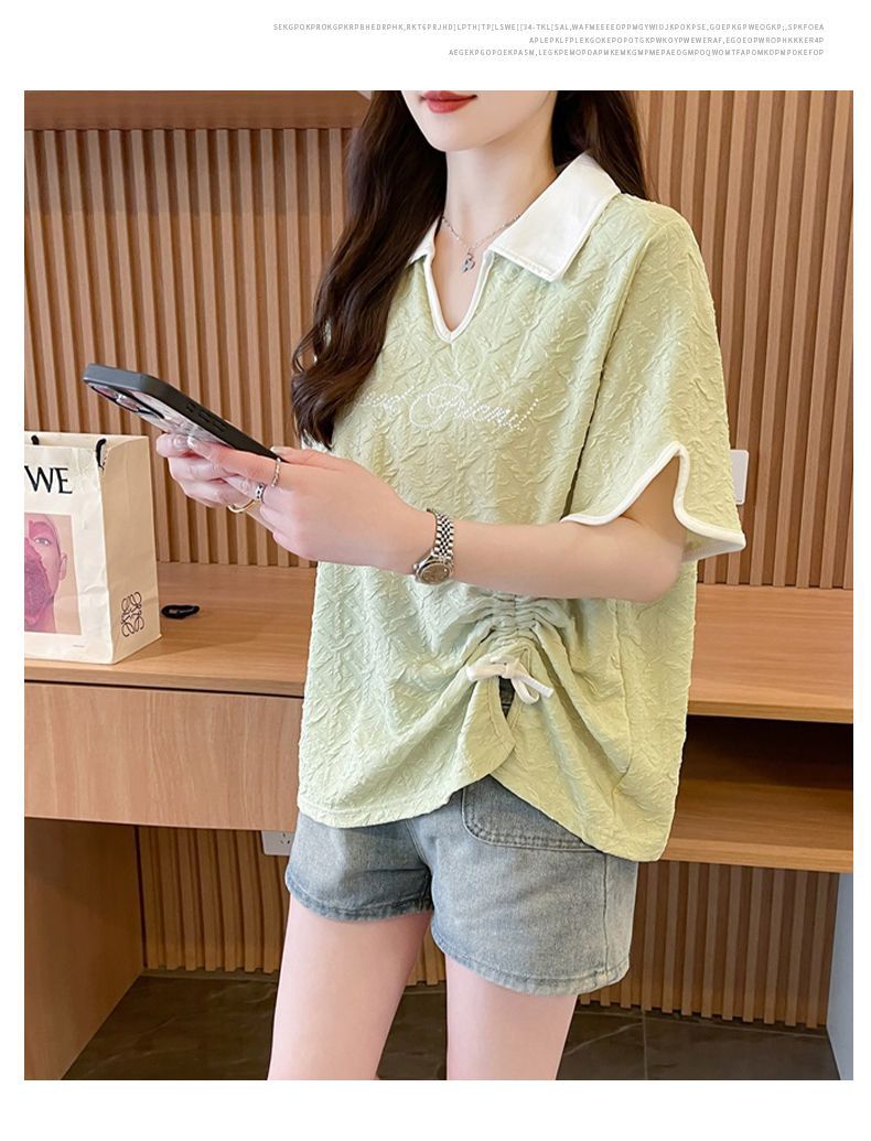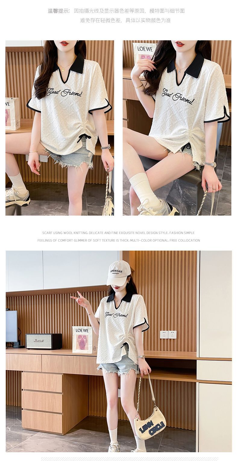 불규칙한 폴로 칼라 반팔 티셔츠 여성 여름 2025 새로운 느슨한 작은 남자 디자인 센스 밍크 탑 옷스토어 가기