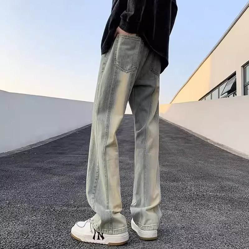 아메리칸 스타일 바이브 스타일 바지 남자 2023 가을 하이 스트리트 세척 노란색 진흙 염색 청바지 노예 슬림 핏 작업복 스트레이트 바지스토어 가기