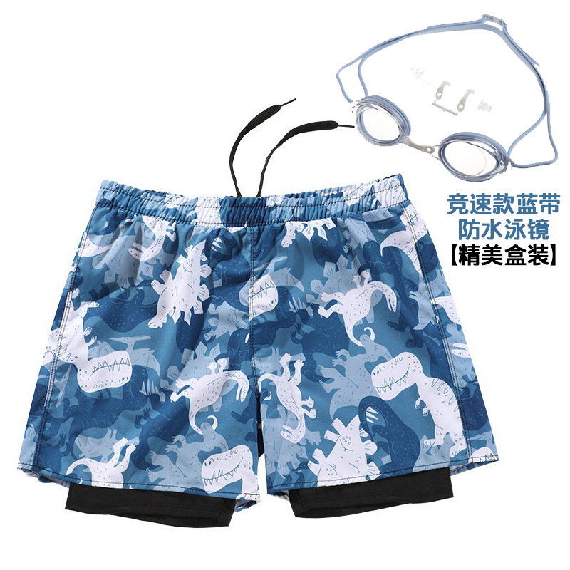 • 블루 다이노소어 [더블 레이어 수영 트렁크] + 수영 고글 세트