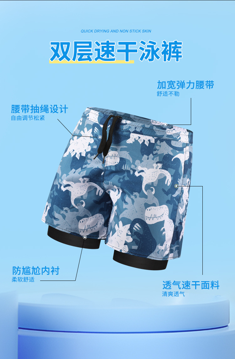 • 블루 다이노소어 [더블 레이어 수영 트렁크]
