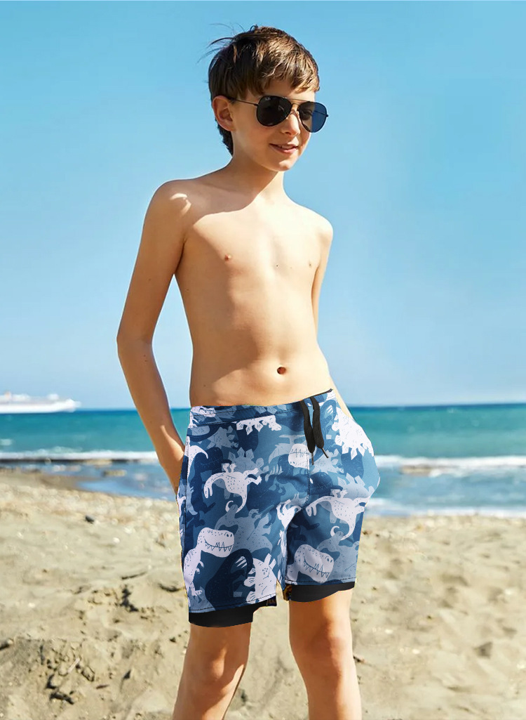 소년, 중학생, 소년, 청소년, 중학생, 당황하지 않는 수영을위한 새로운 어린이 이중층 수영 트렁크스토어 가기