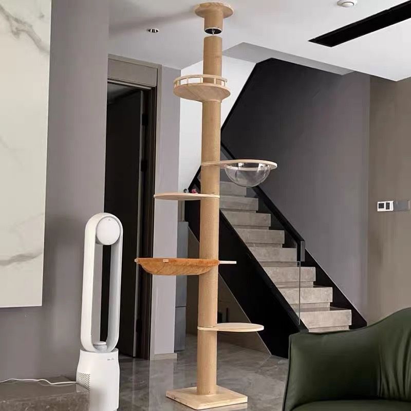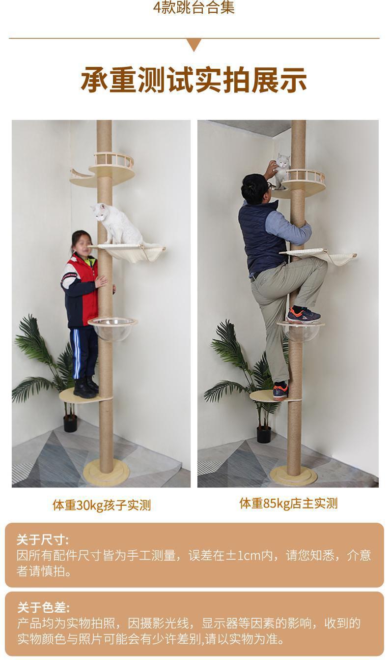 솔리드 우드 다층 고양이 등반 랙 시살 칼럼 기둥 점프 플랫폼 고양이 둥지 고양이 나무 통합 스크래치 방지 및 낙하 방지 고양이 빌라