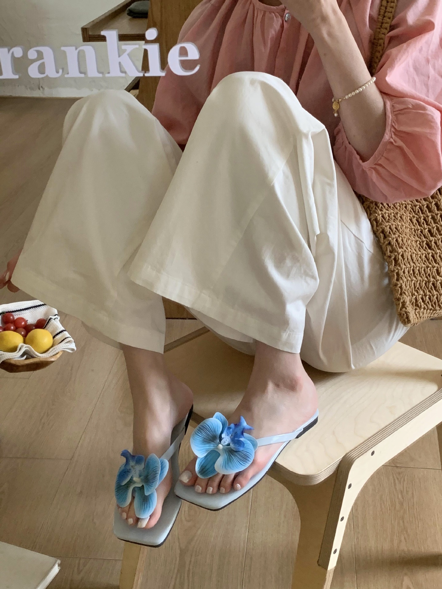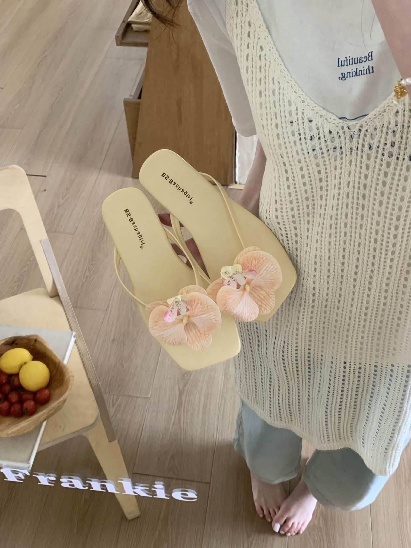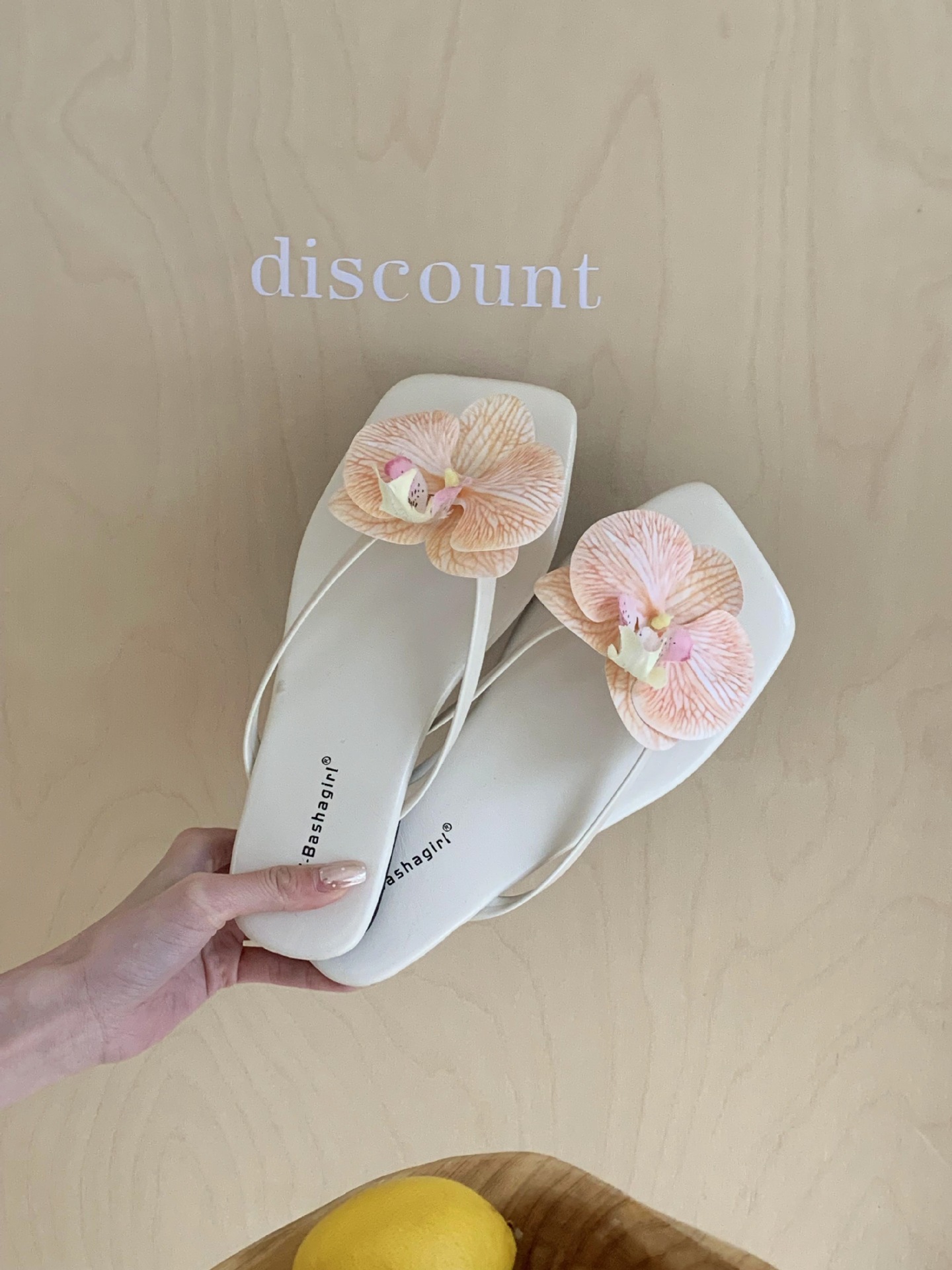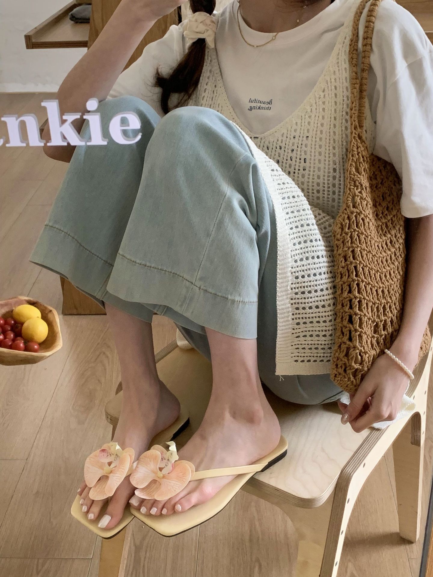 여성을위한 스퀘어 토 대형 슬리퍼 2025 여성을위한 새로운 여름 패션 꽃 헤링본 플립 플롭 캐주얼 비치 샌들