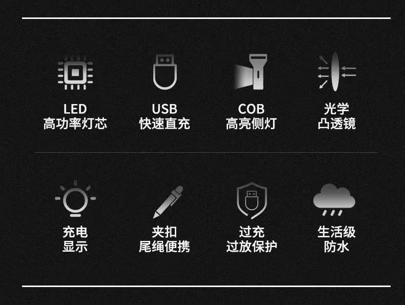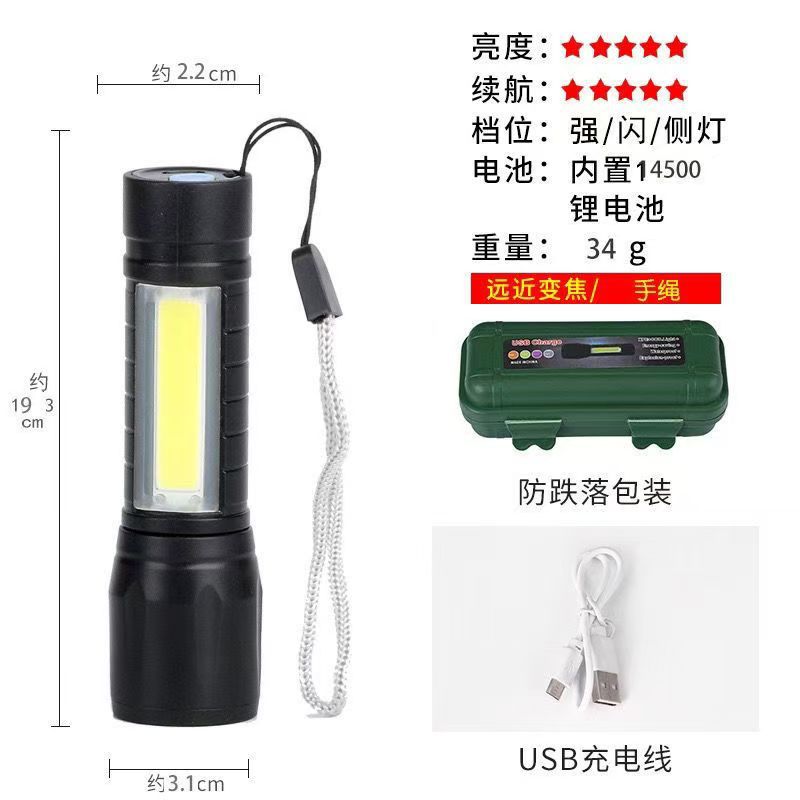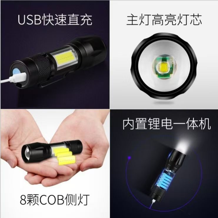 손전등 강한 빛 충전식 USB 야외 장거리 휴대용 미니 다기능 작업 조명 방수 홈 led 크로스 보더스토어 가기