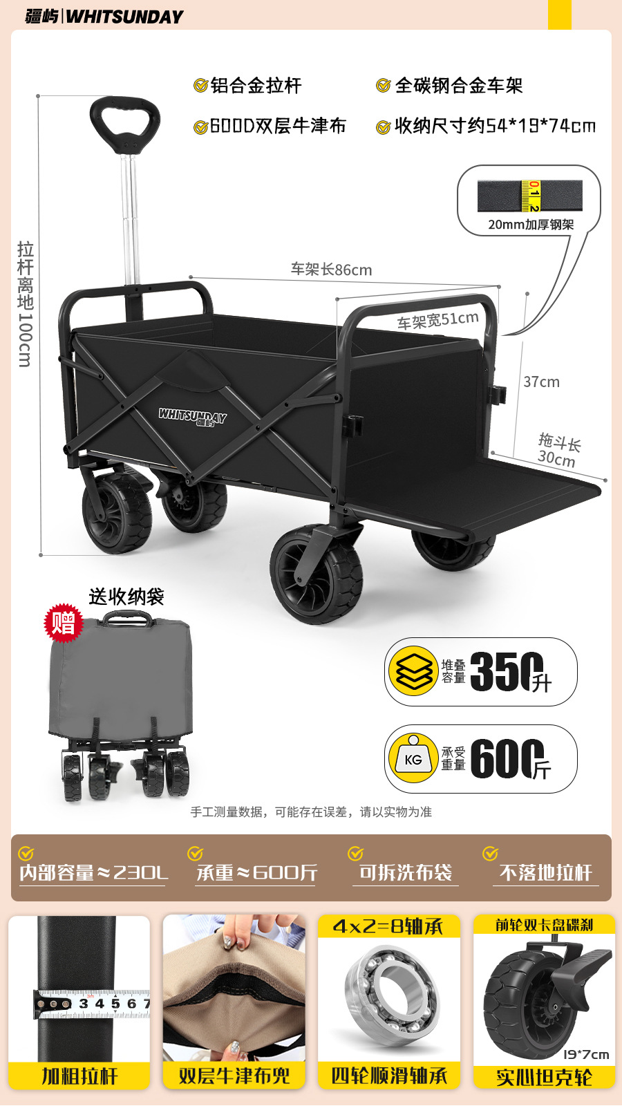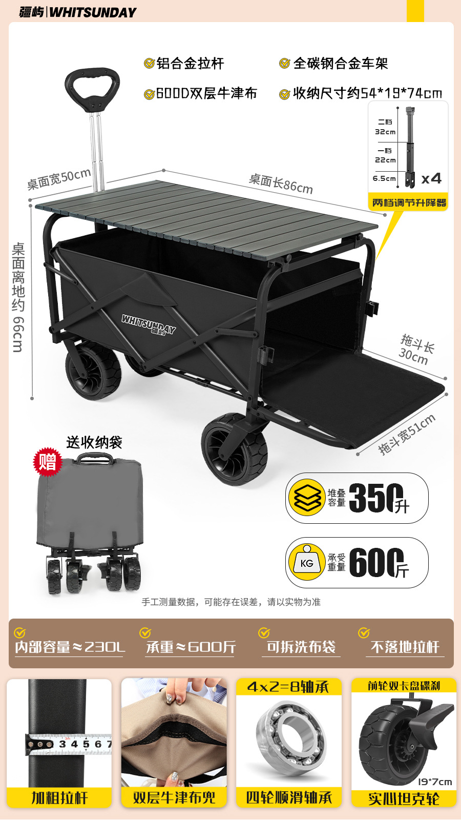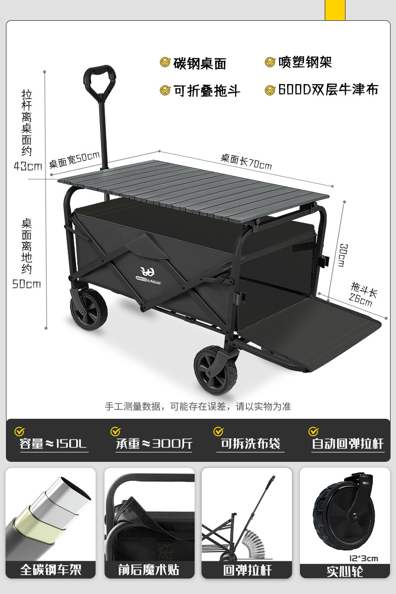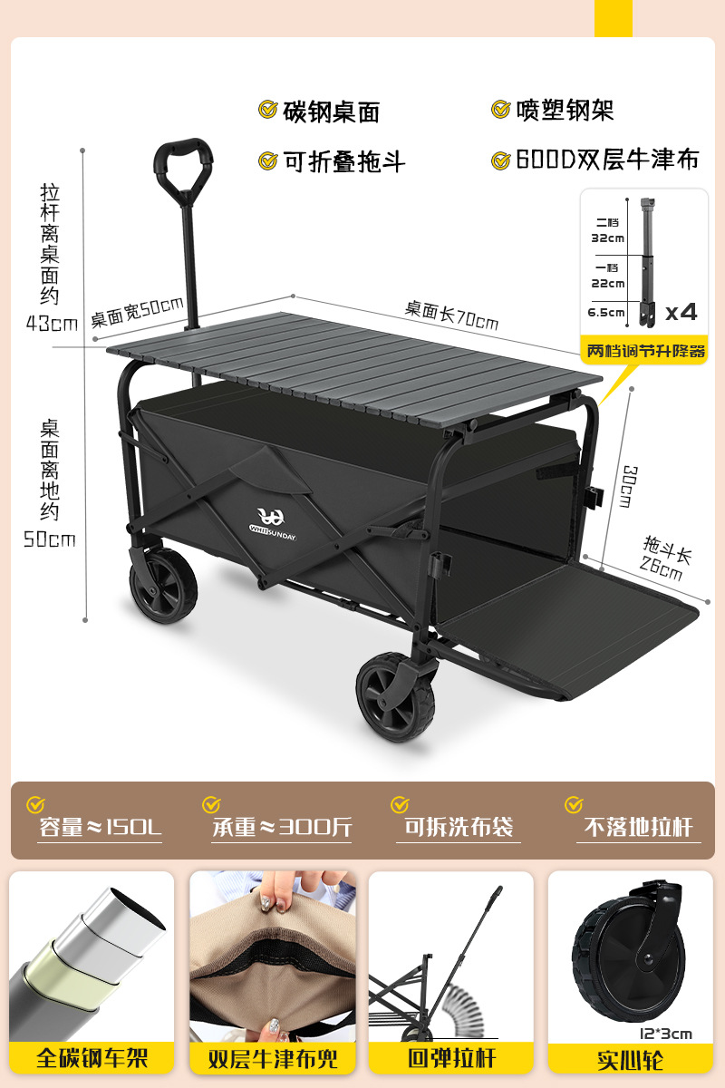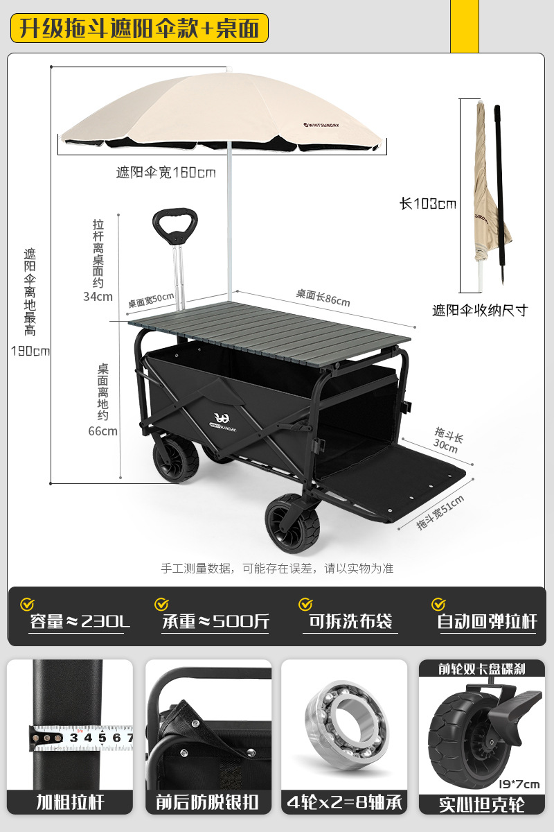 • [프로 블랙] 전지형 견인 버킷 + 에그롤 데스크탑 + 파라솔 두꺼운 5CM 타이로드 더블 척 디스크 브레이크 전면 및 후면 강화 크로스바