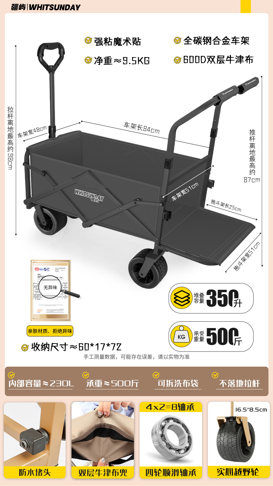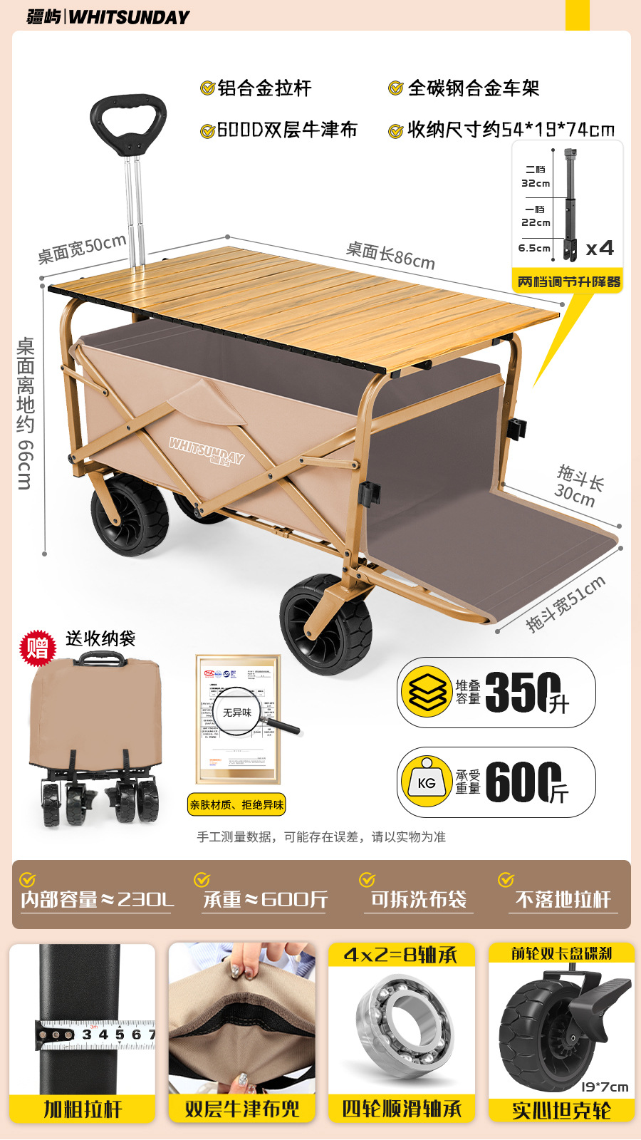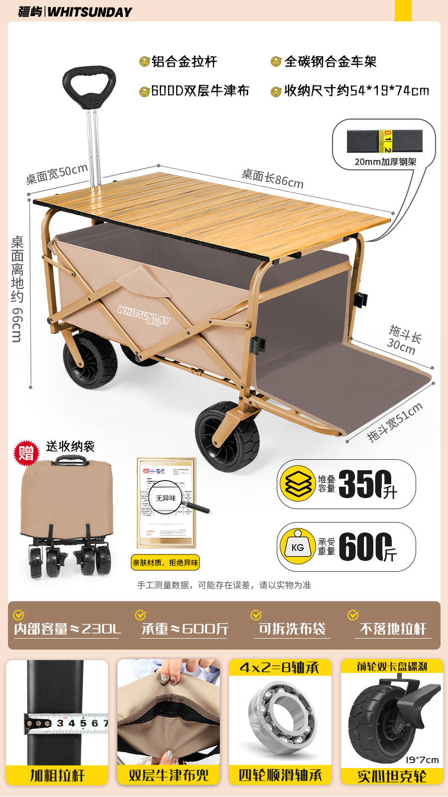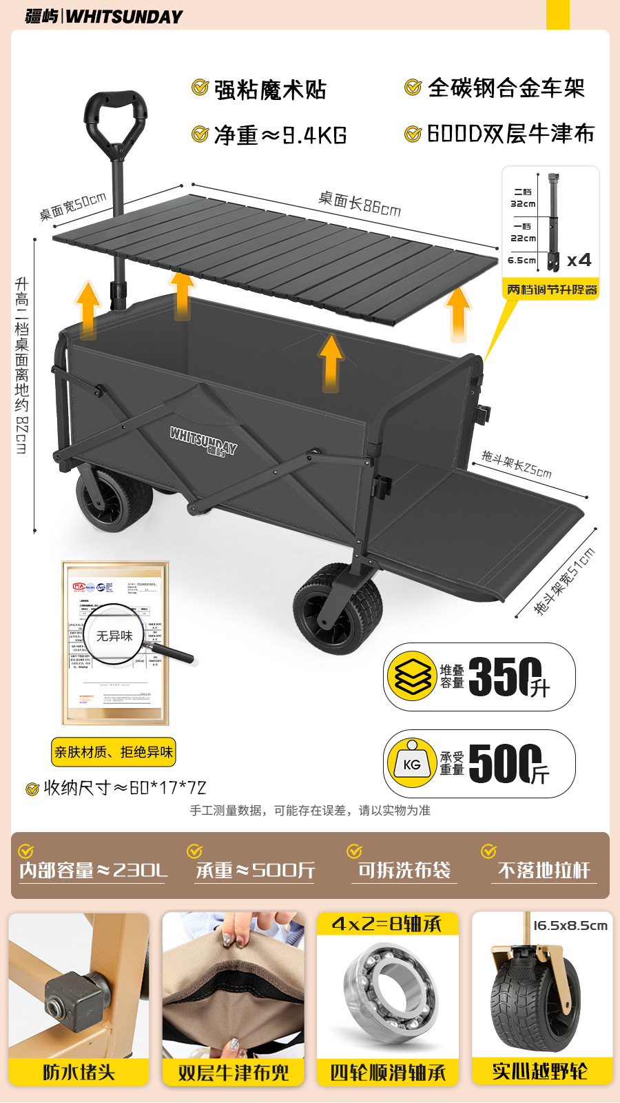 • [프로 블랙] 전지형 견인 버킷 + 에그롤 데스크탑 + 파라솔 두꺼운 5CM 타이로드 더블 척 디스크 브레이크 전면 및 후면 강화 크로스바