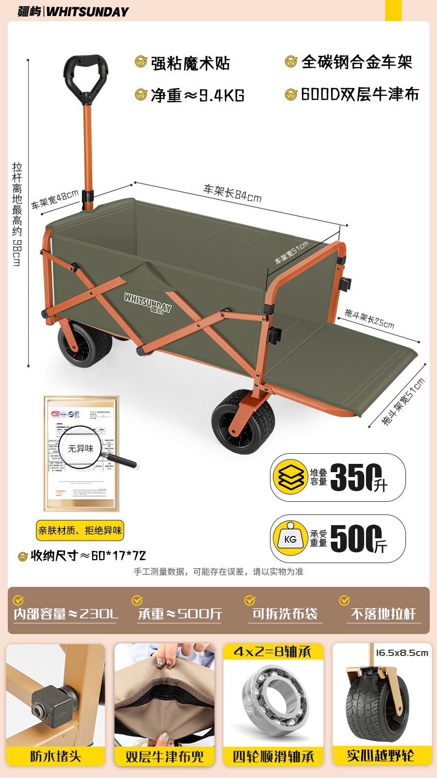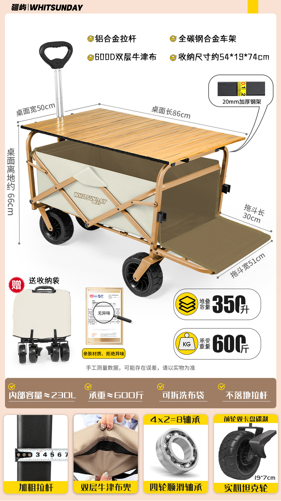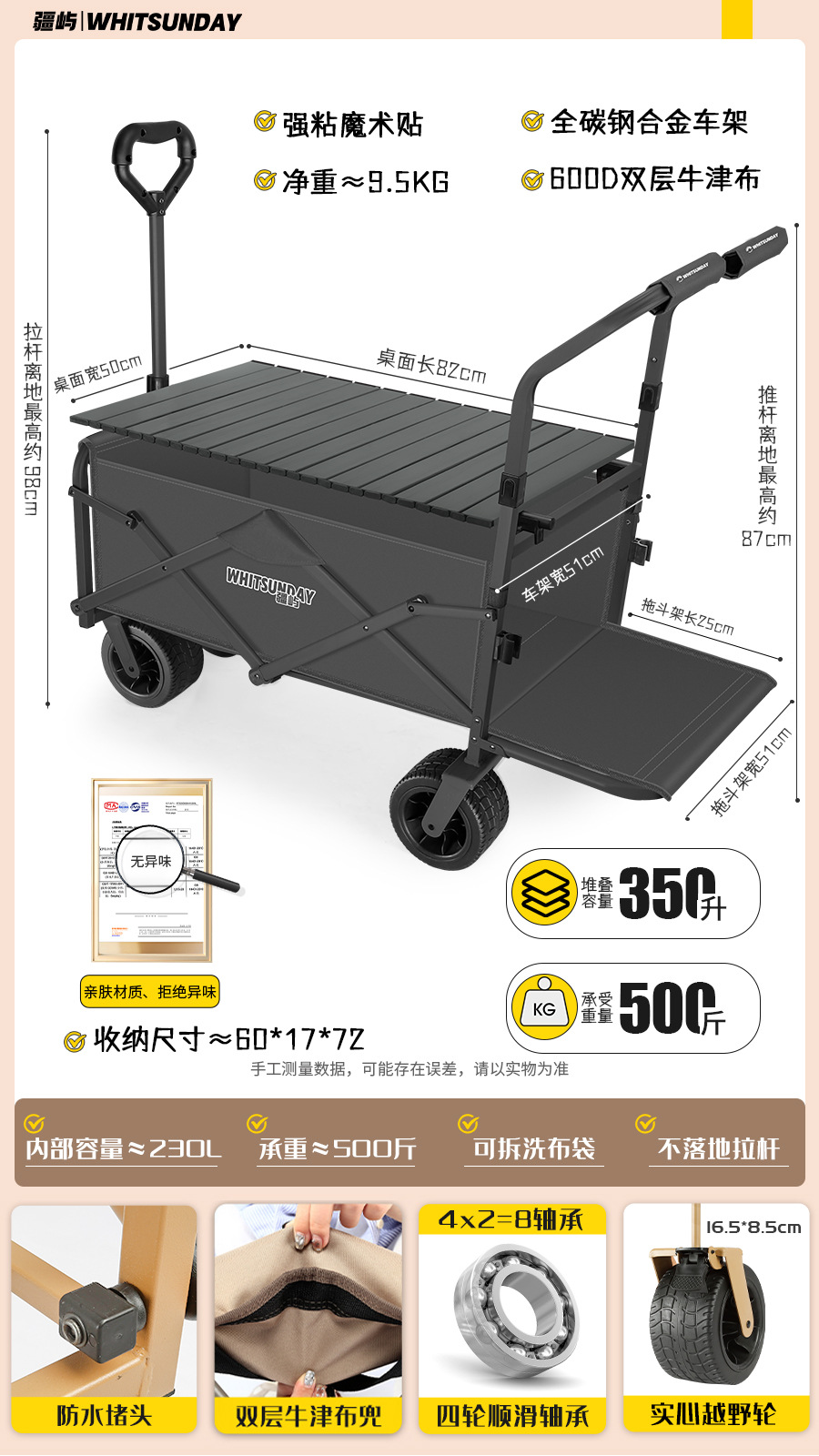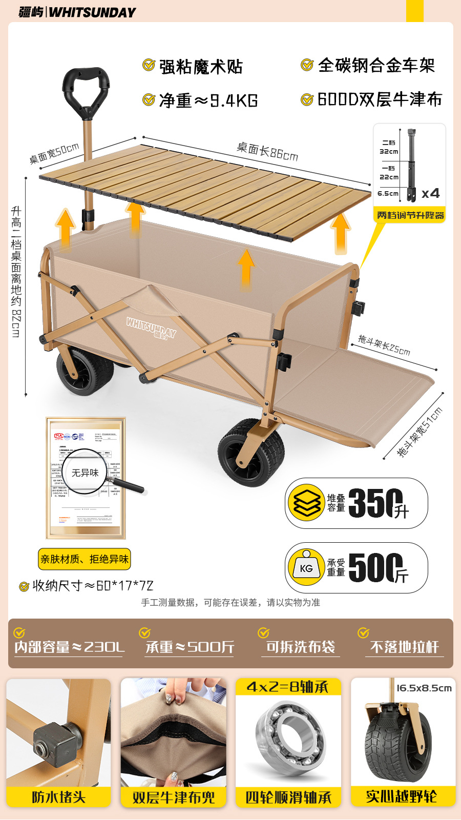 • [프로 블랙] 전지형 견인 버킷 + 에그롤 데스크탑 + 파라솔 두꺼운 5CM 타이로드 더블 척 디스크 브레이크 전면 및 후면 강화 크로스바
